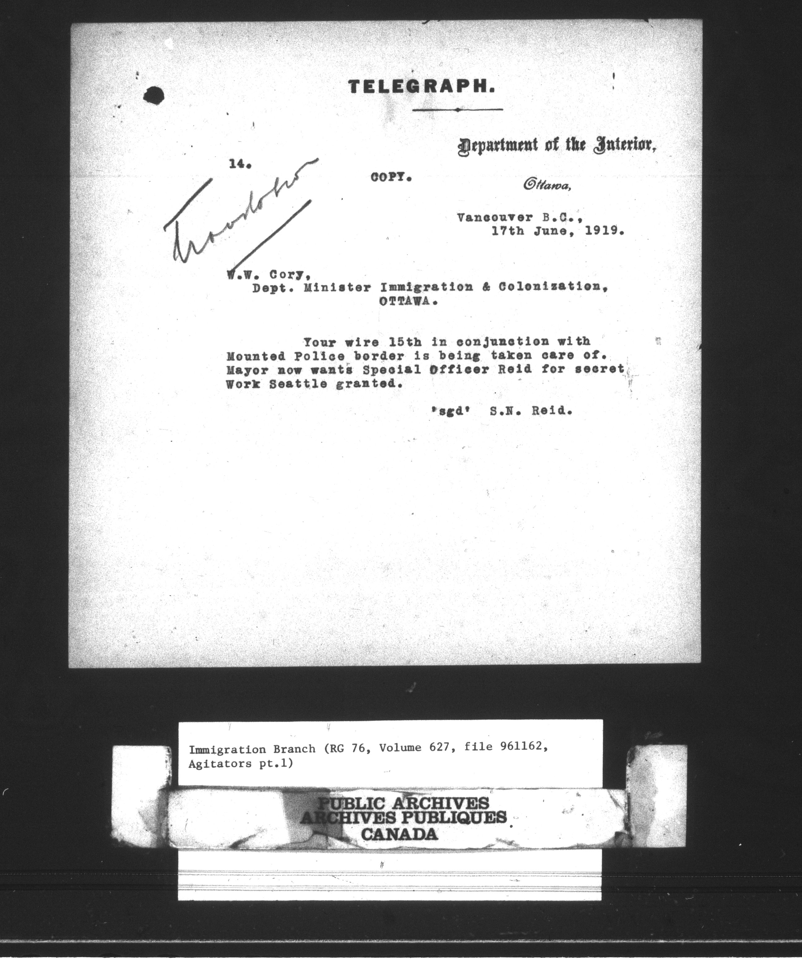 Subject, policy and case files in the First Central Registry series of the Immigration Program, 1892-1950 - 10442