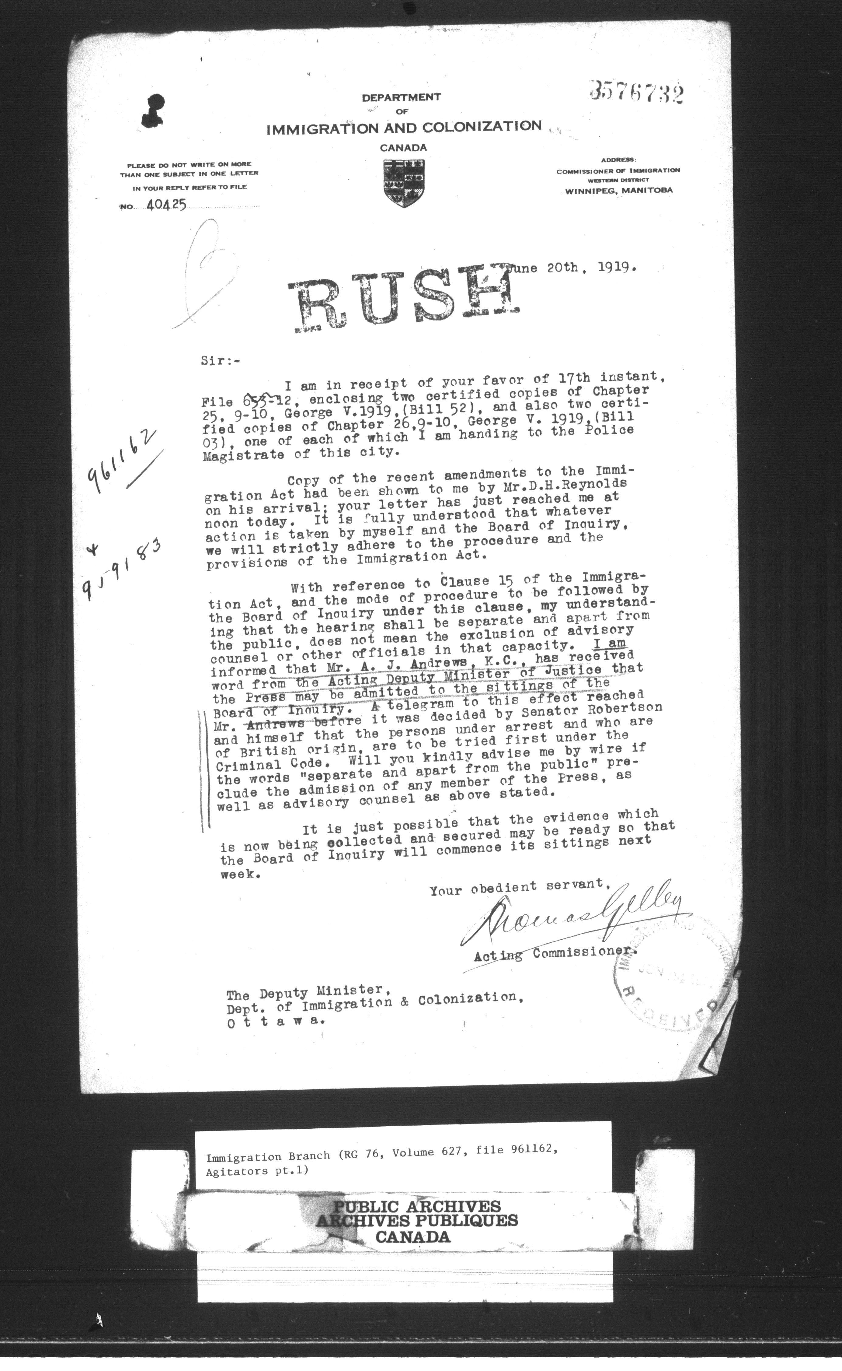 Subject, policy and case files in the First Central Registry series of the Immigration Program, 1892-1950 - 10442