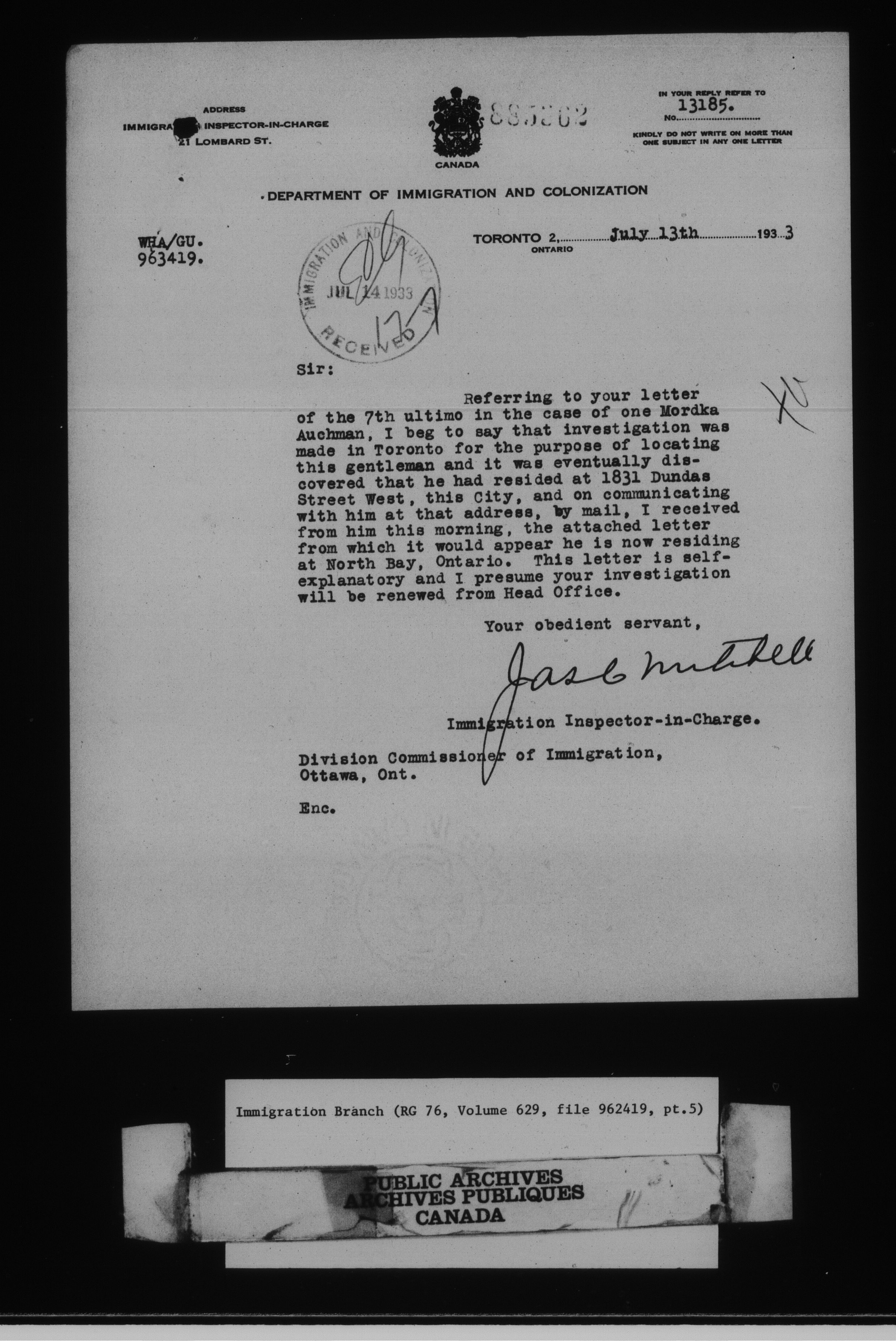 Subject, policy and case files in the First Central Registry series of the Immigration Program, 1892-1950 - 10445