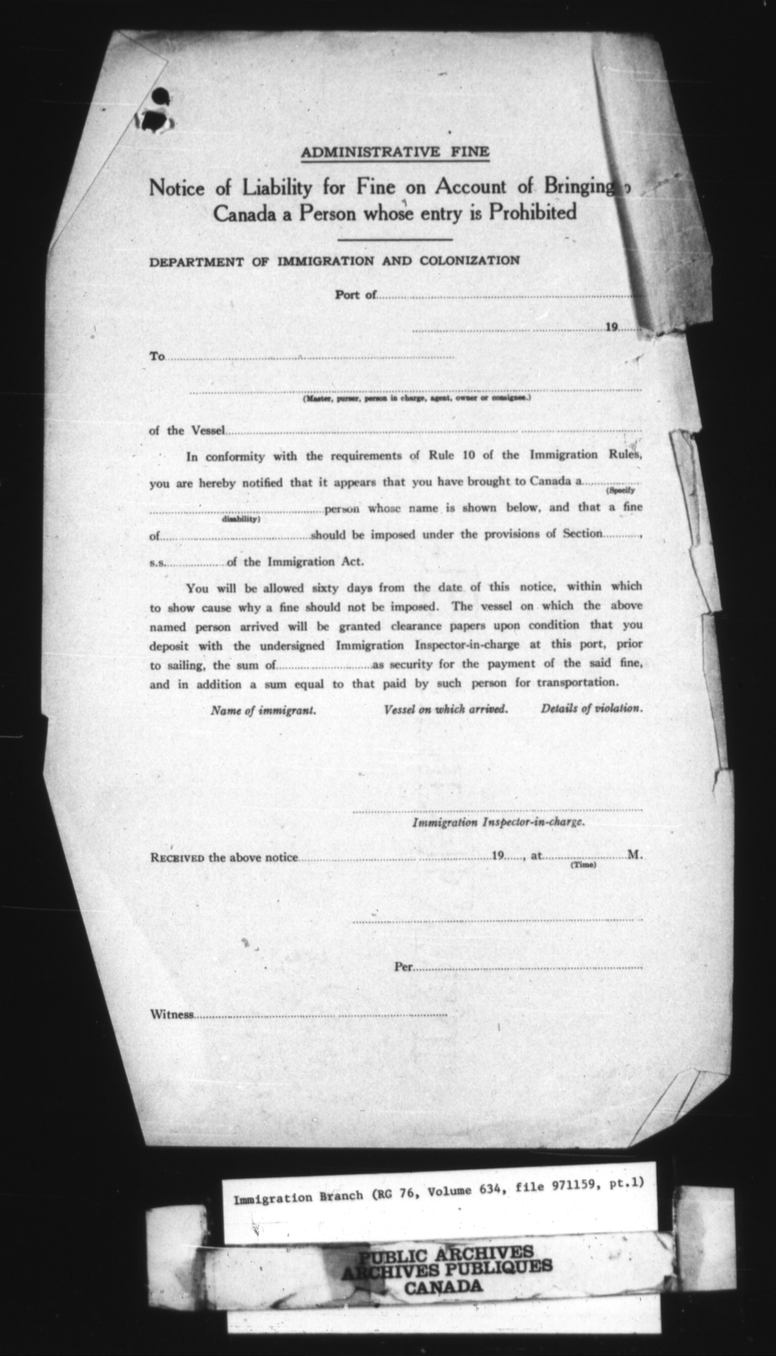 Subject, policy and case files in the First Central Registry series of the Immigration Program, 1892-1950 - 10447
