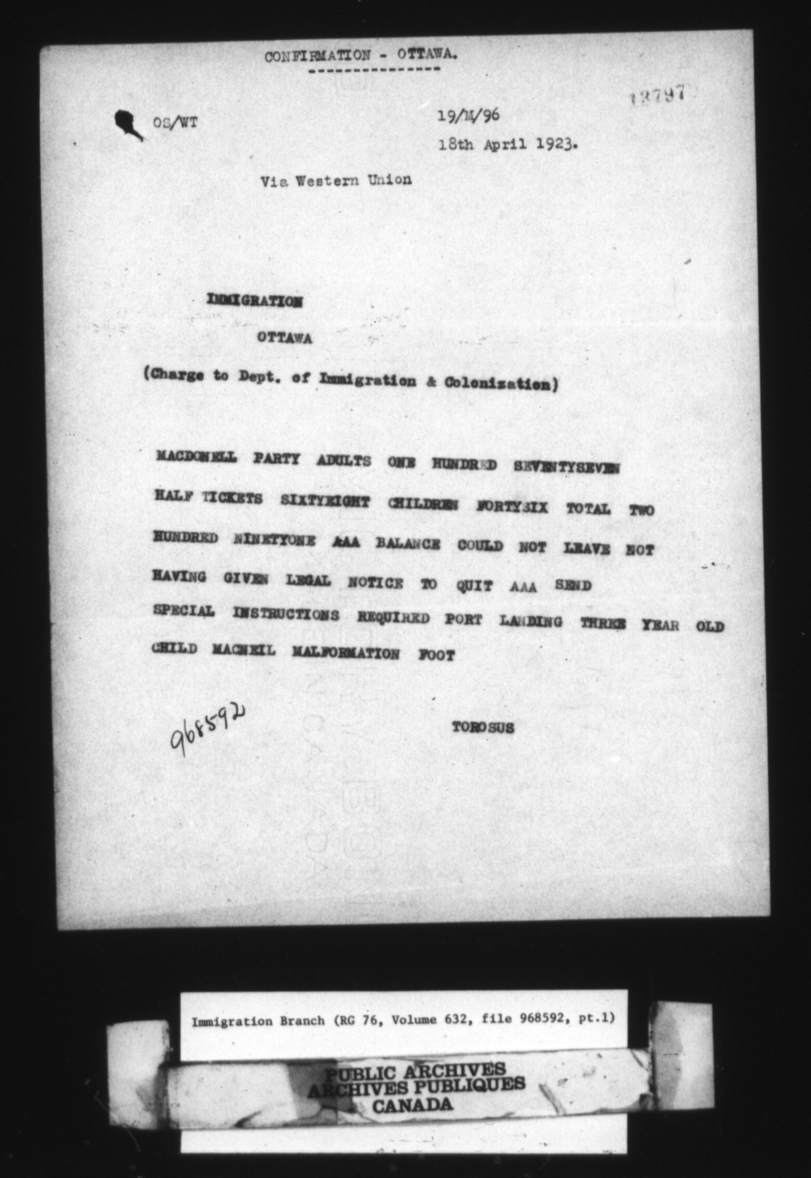 Subject, policy and case files in the First Central Registry series of the Immigration Program, 1892-1950 - 10447