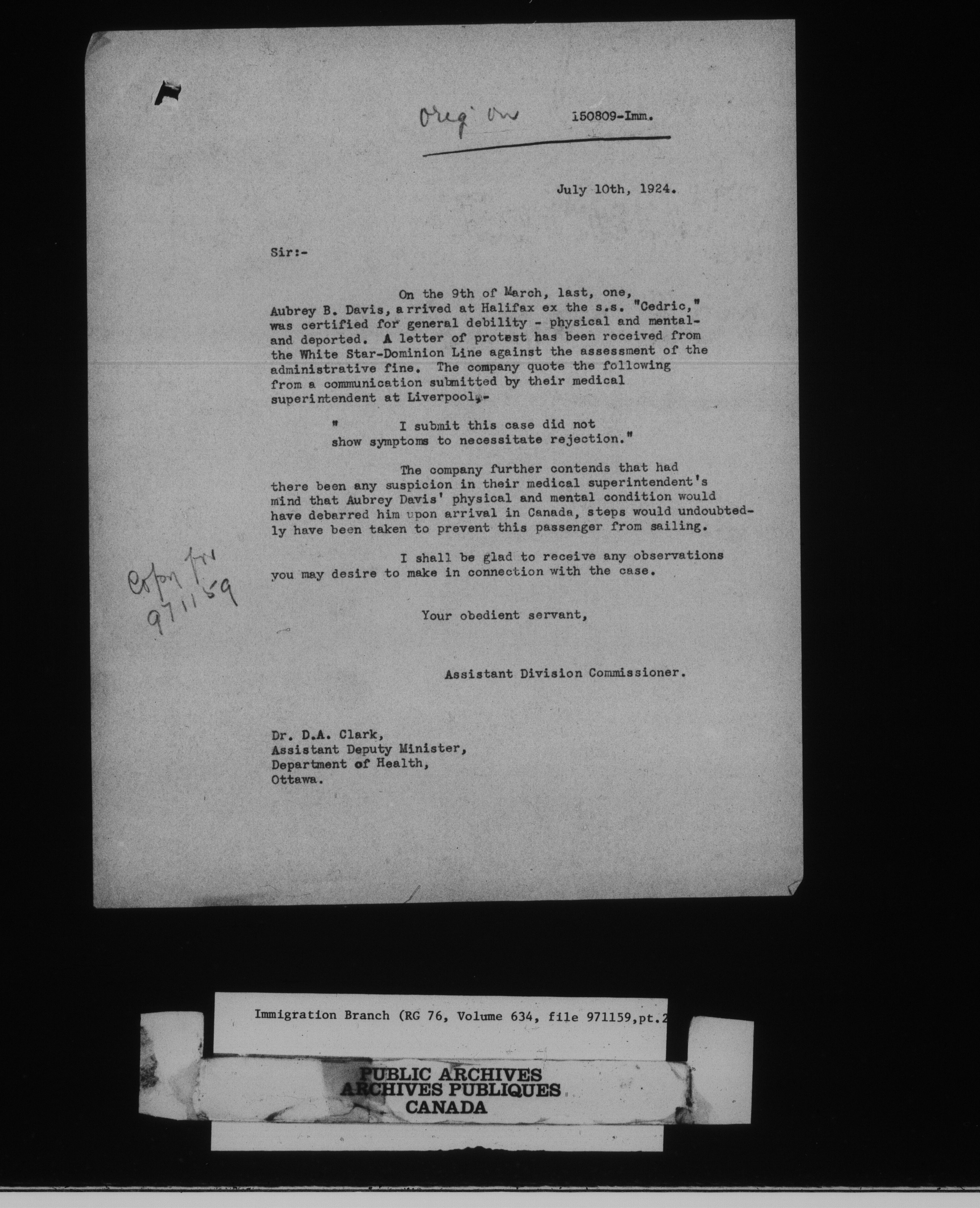 Subject, policy and case files in the First Central Registry series of the Immigration Program, 1892-1950 - 10448