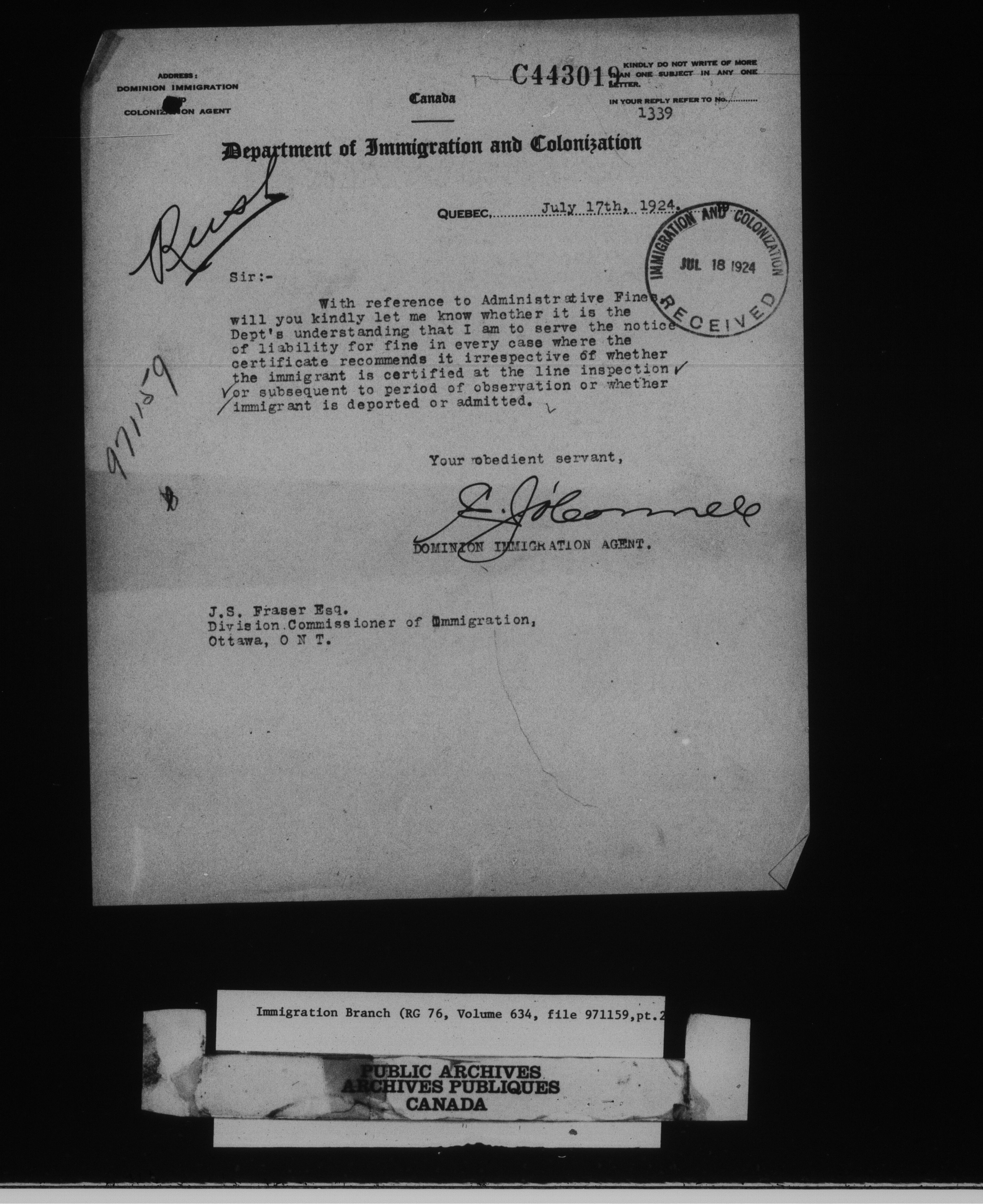 Subject, policy and case files in the First Central Registry series of the Immigration Program, 1892-1950 - 10448