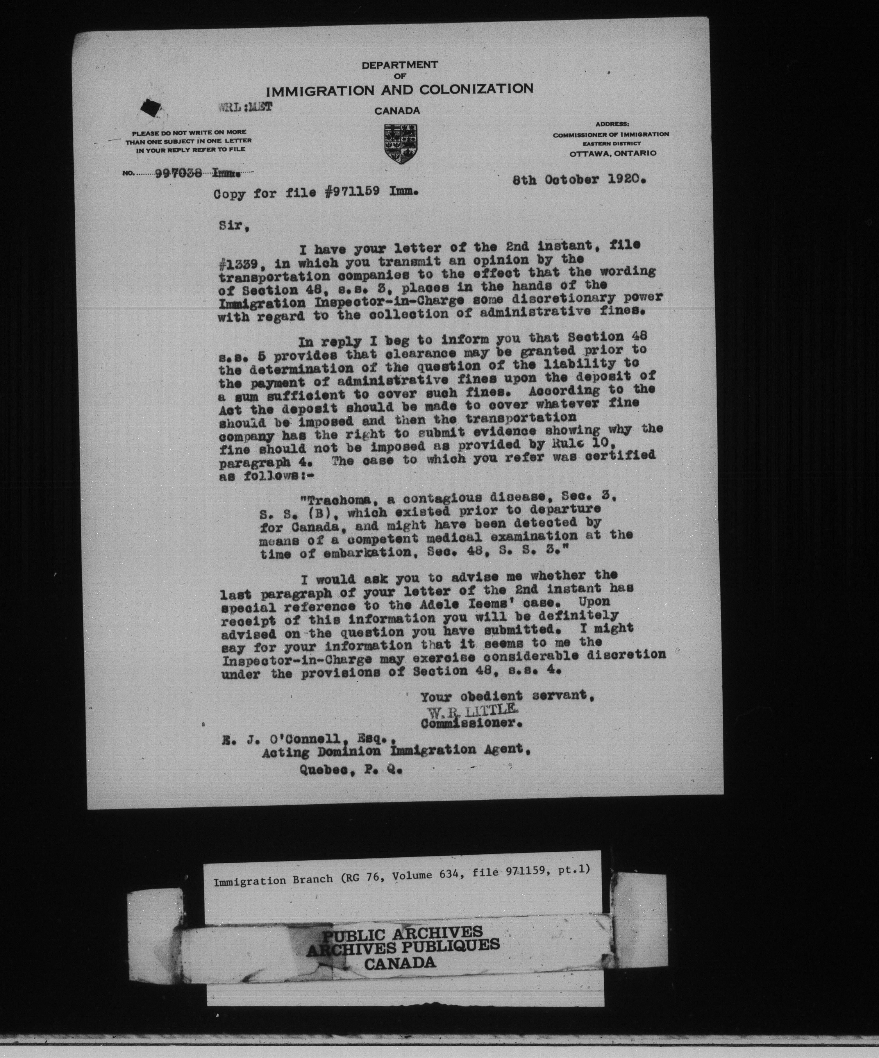 Subject, policy and case files in the First Central Registry series of the Immigration Program, 1892-1950 - 10448