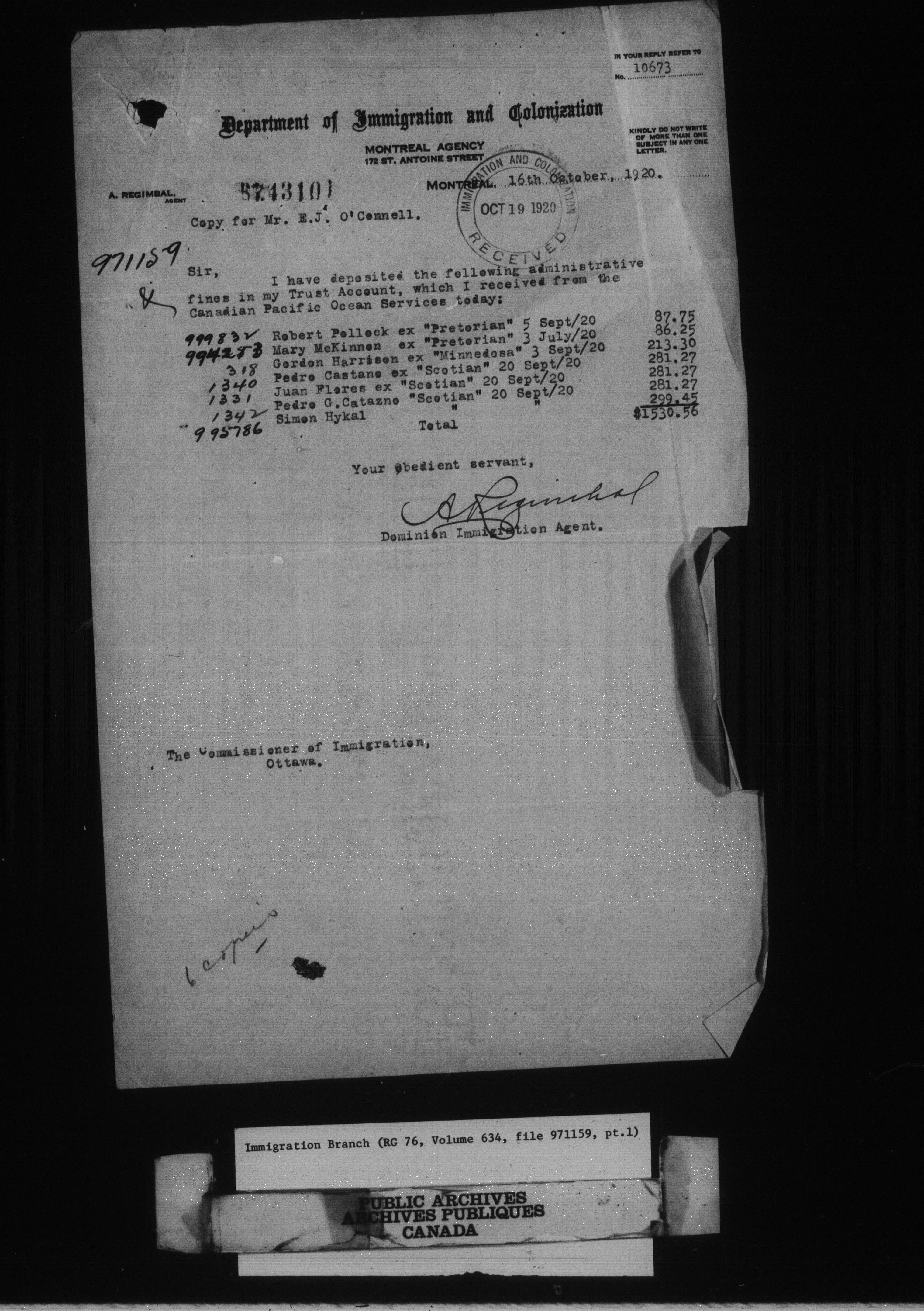 Subject, policy and case files in the First Central Registry series of the Immigration Program, 1892-1950 - 10448