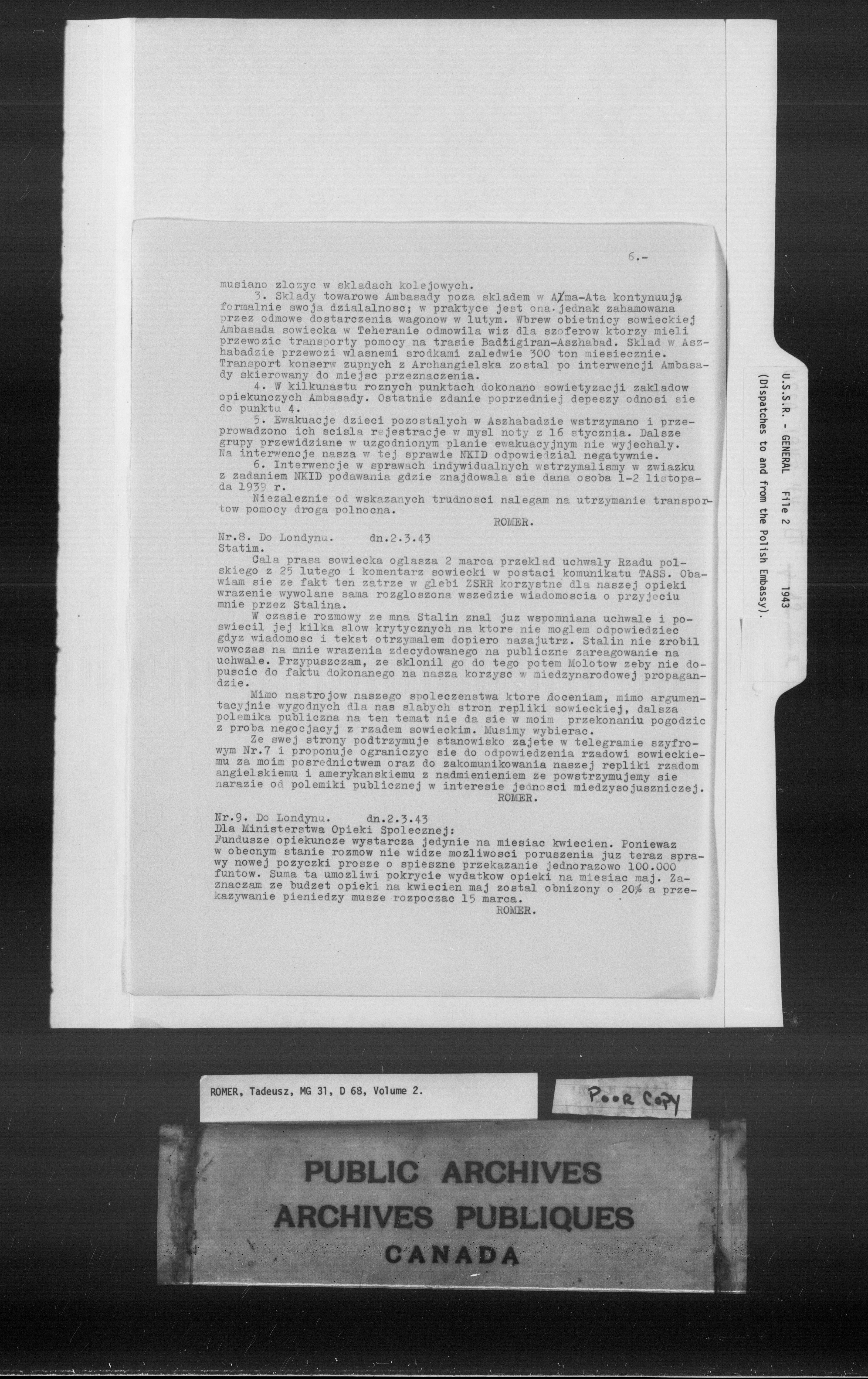 Tadeusz Romer fonds : diplomatic activities : C-10452