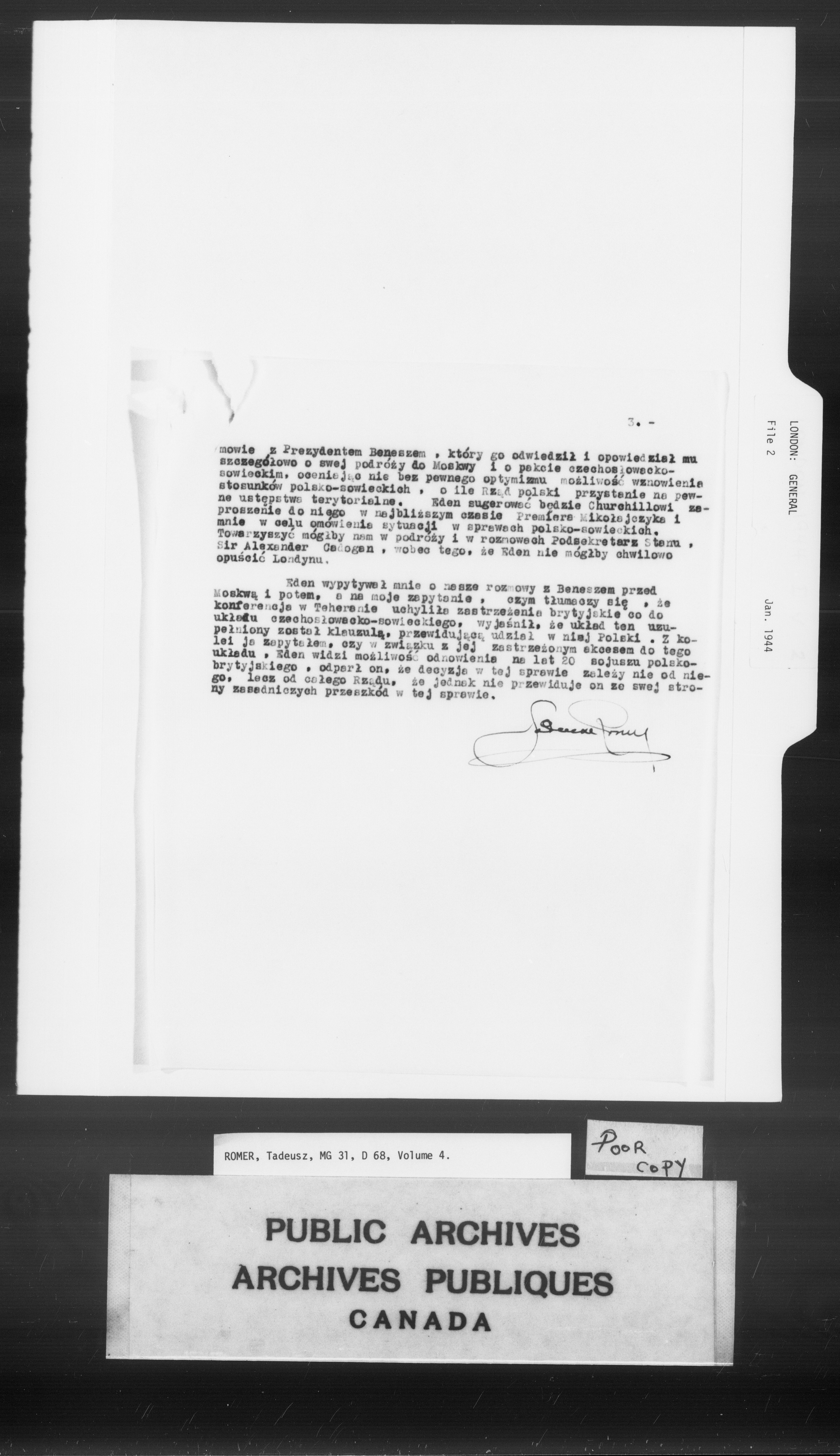 Tadeusz Romer fonds : diplomatic activities : C-10454