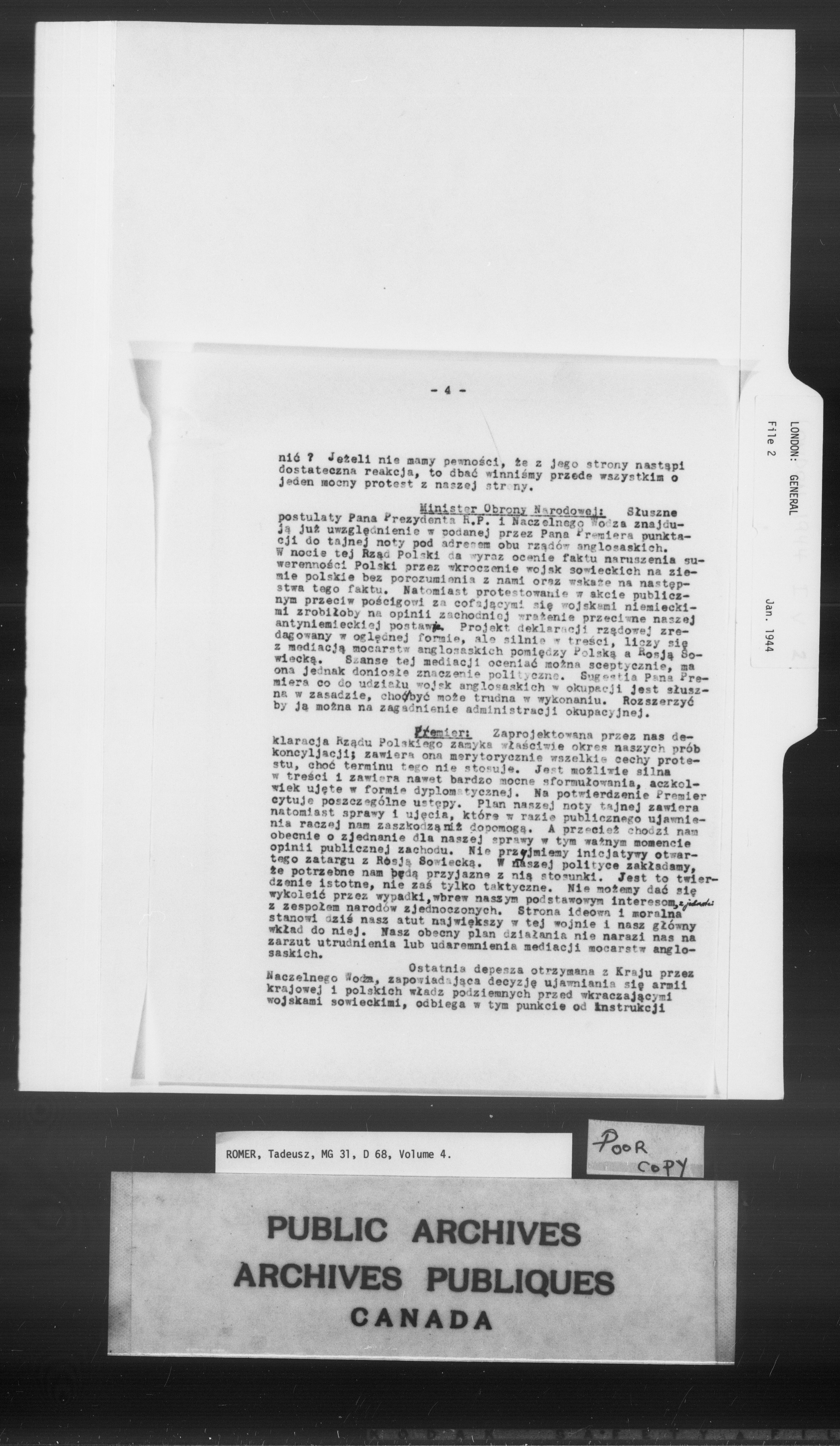 Tadeusz Romer fonds : diplomatic activities : C-10454