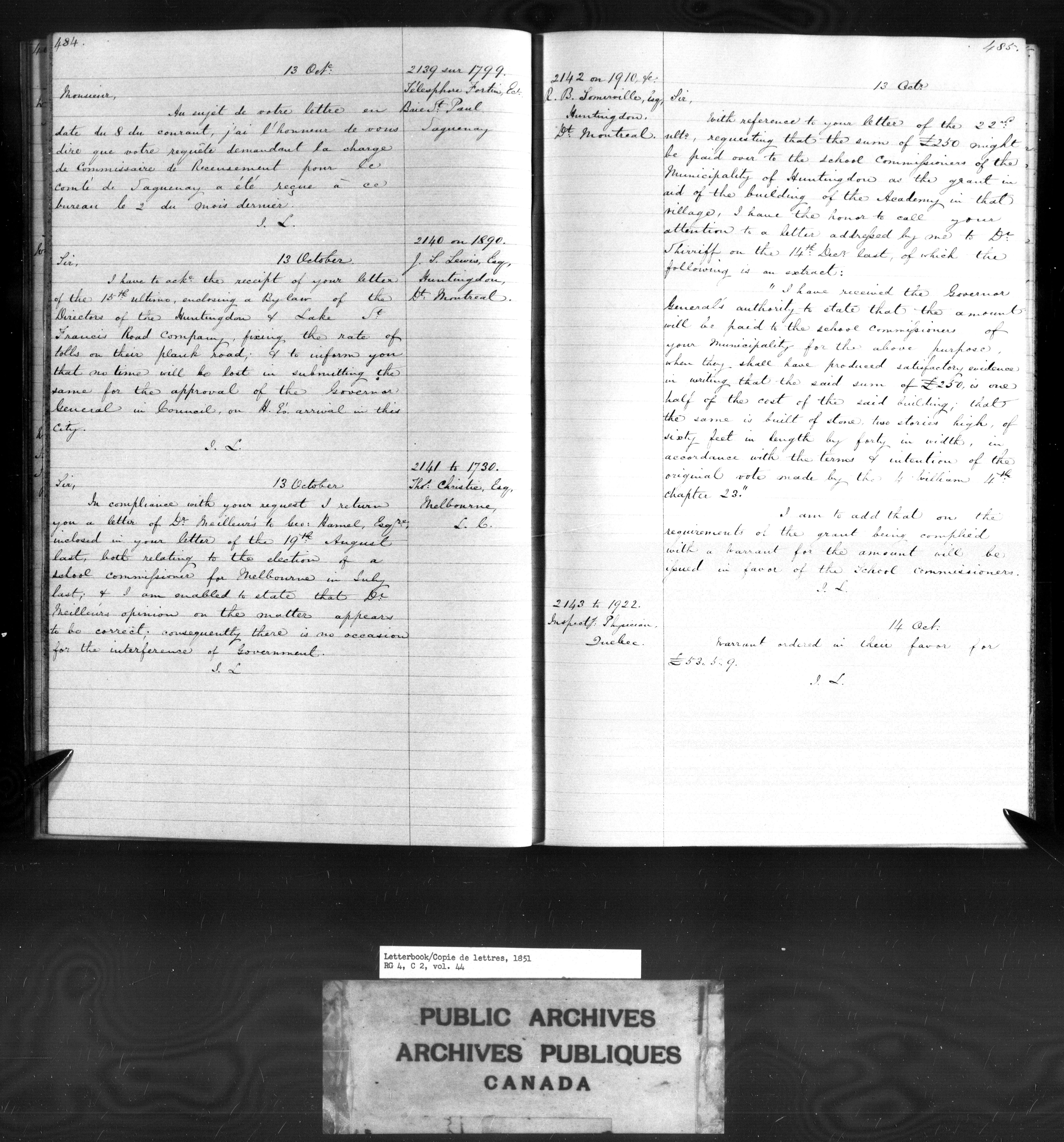 Canada East : Provincial Secretary letterbooks, Quebec, Lower Canada and Canada East : C-10473