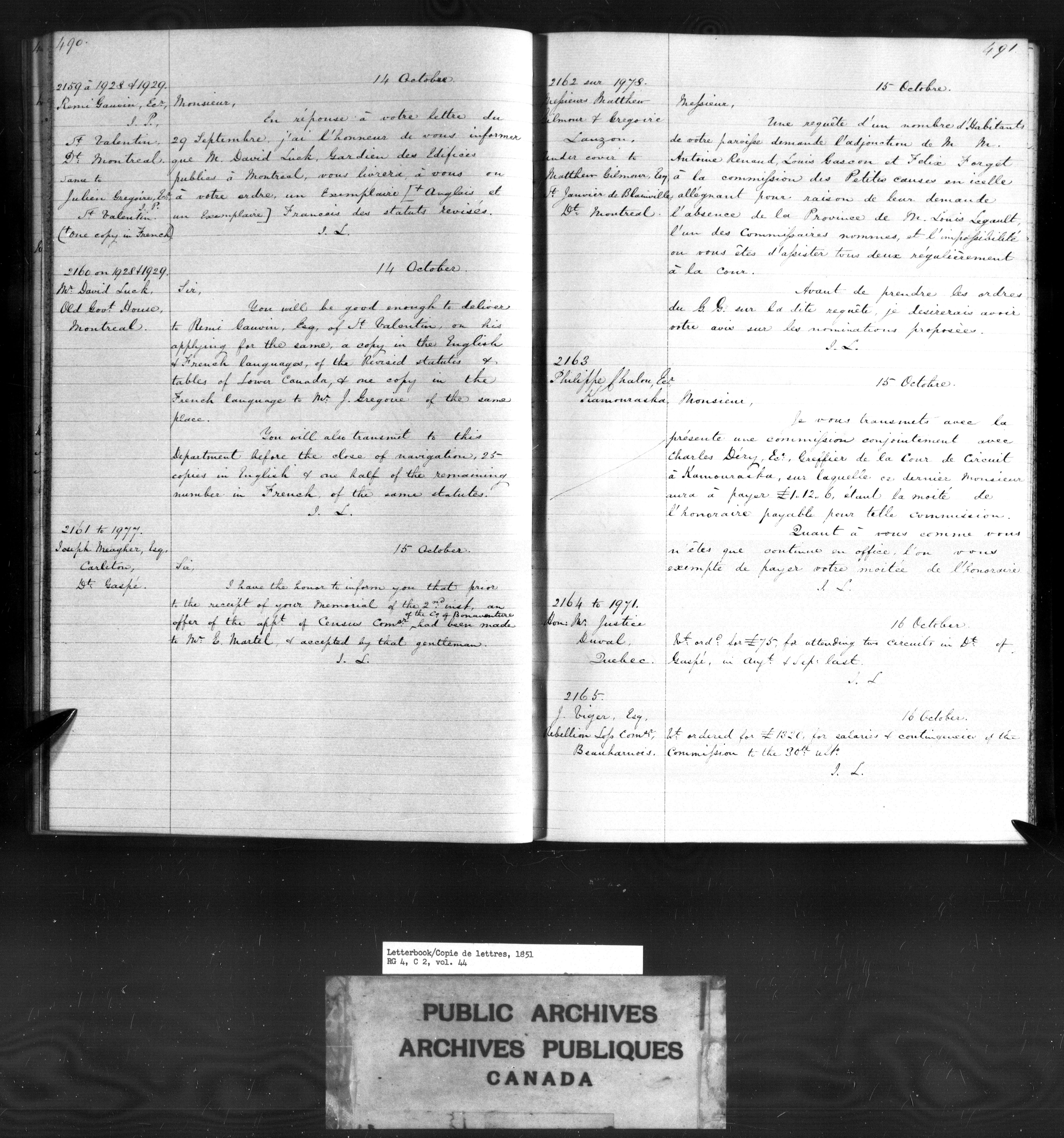Provincial Secretary, Quebec, Lower Canada and Canada East : Letterbooks, 1763-1866 - 10473