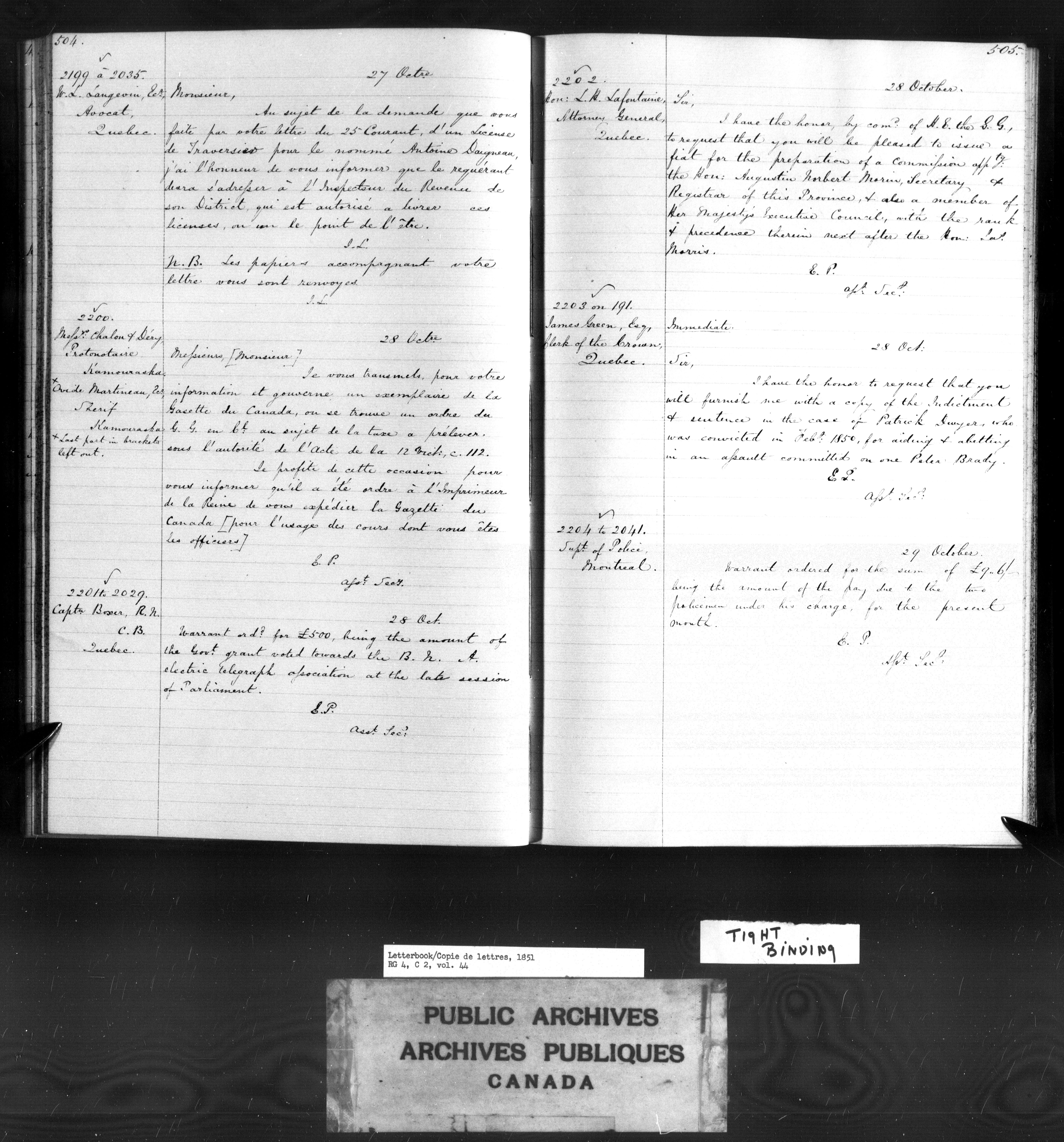 Provincial Secretary, Quebec, Lower Canada and Canada East : Letterbooks, 1763-1866 - 10473