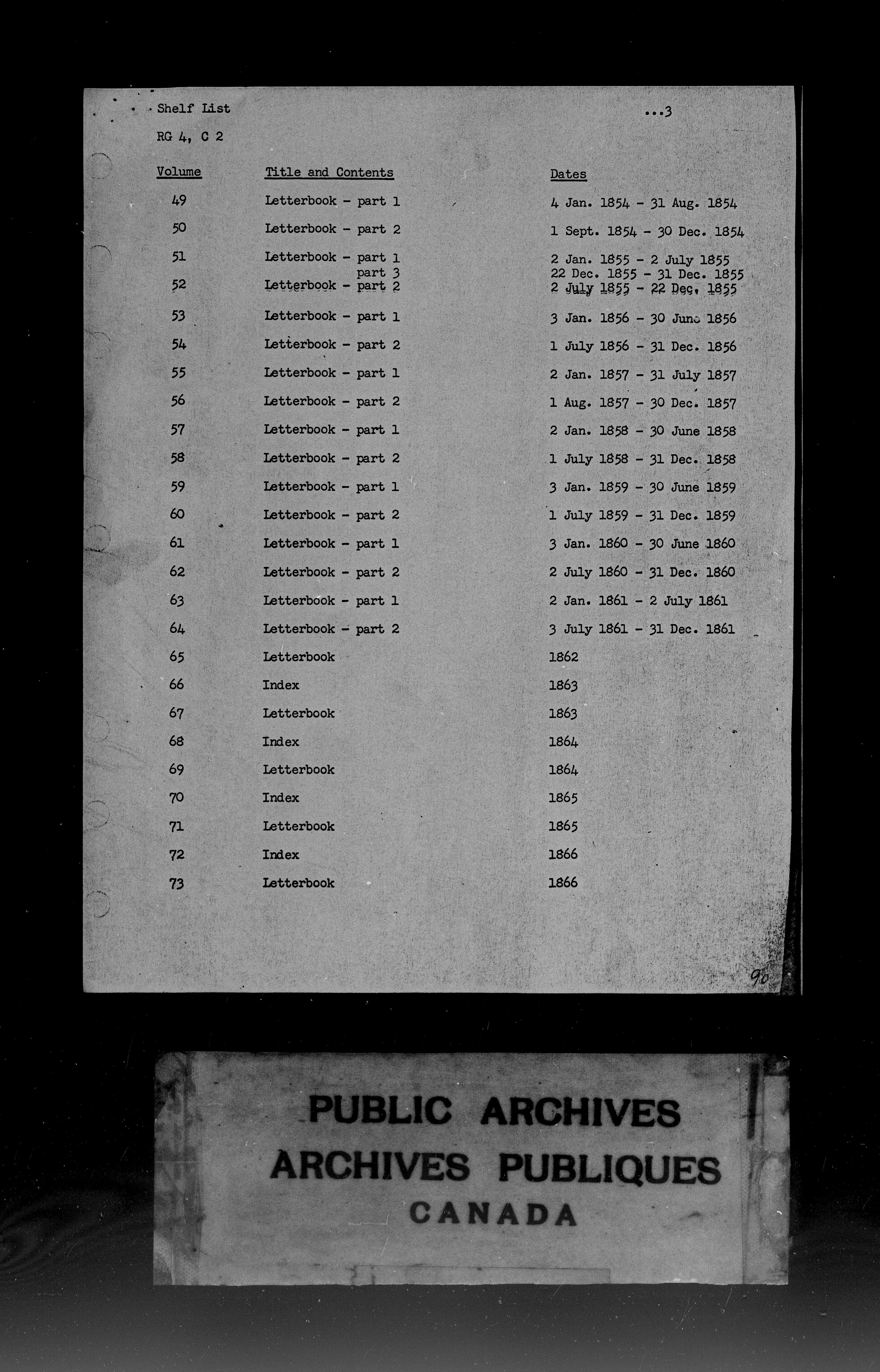 Canada East : Provincial Secretary letterbooks, Quebec, Lower Canada and Canada East : C-10474