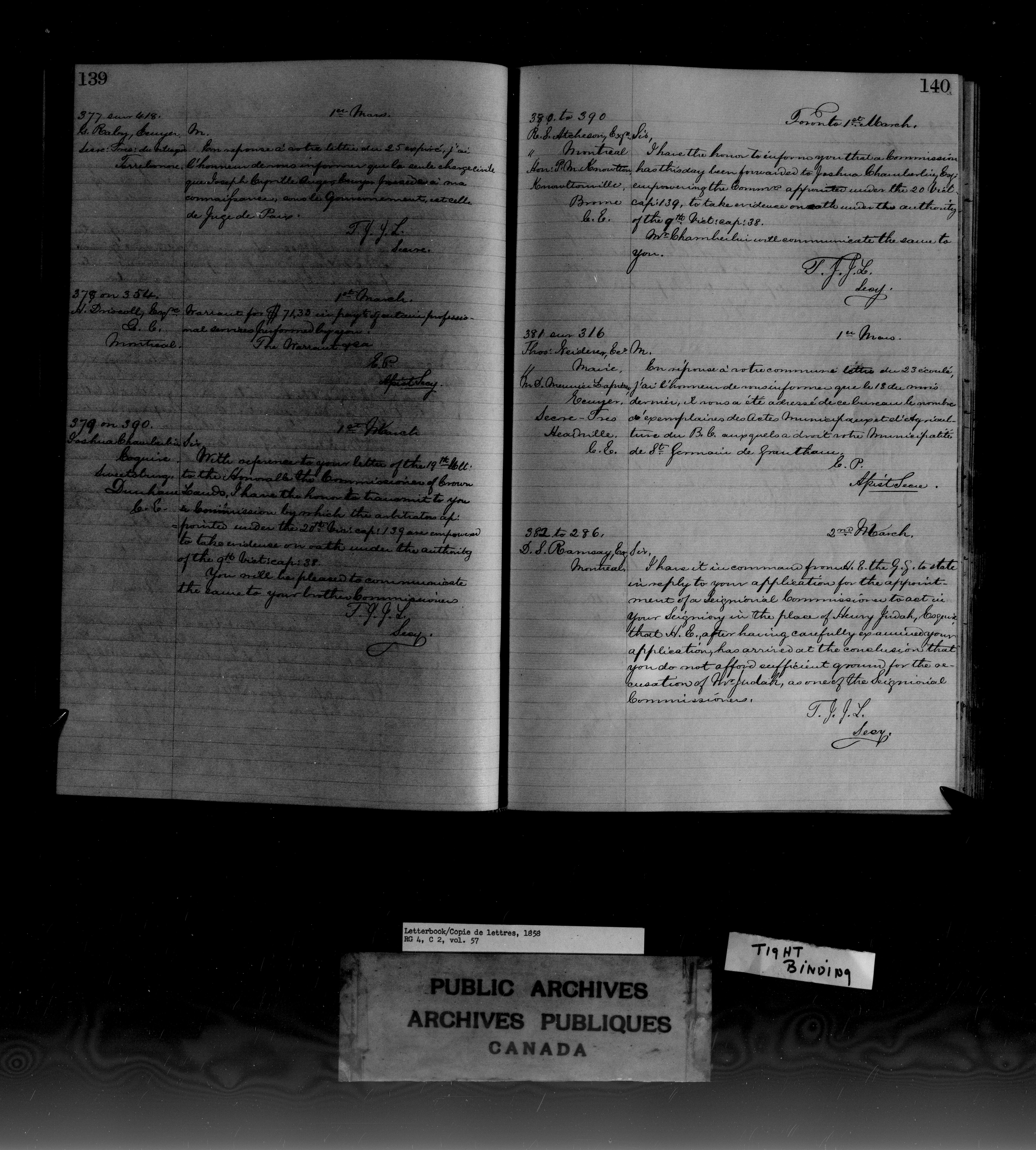 Provincial Secretary, Quebec, Lower Canada and Canada East : Letterbooks, 1763-1866 = Copies de lettres du Sécretaire provincial, Québec, Bas-Canada et Canada-Est, 1763-1866 - 10475
