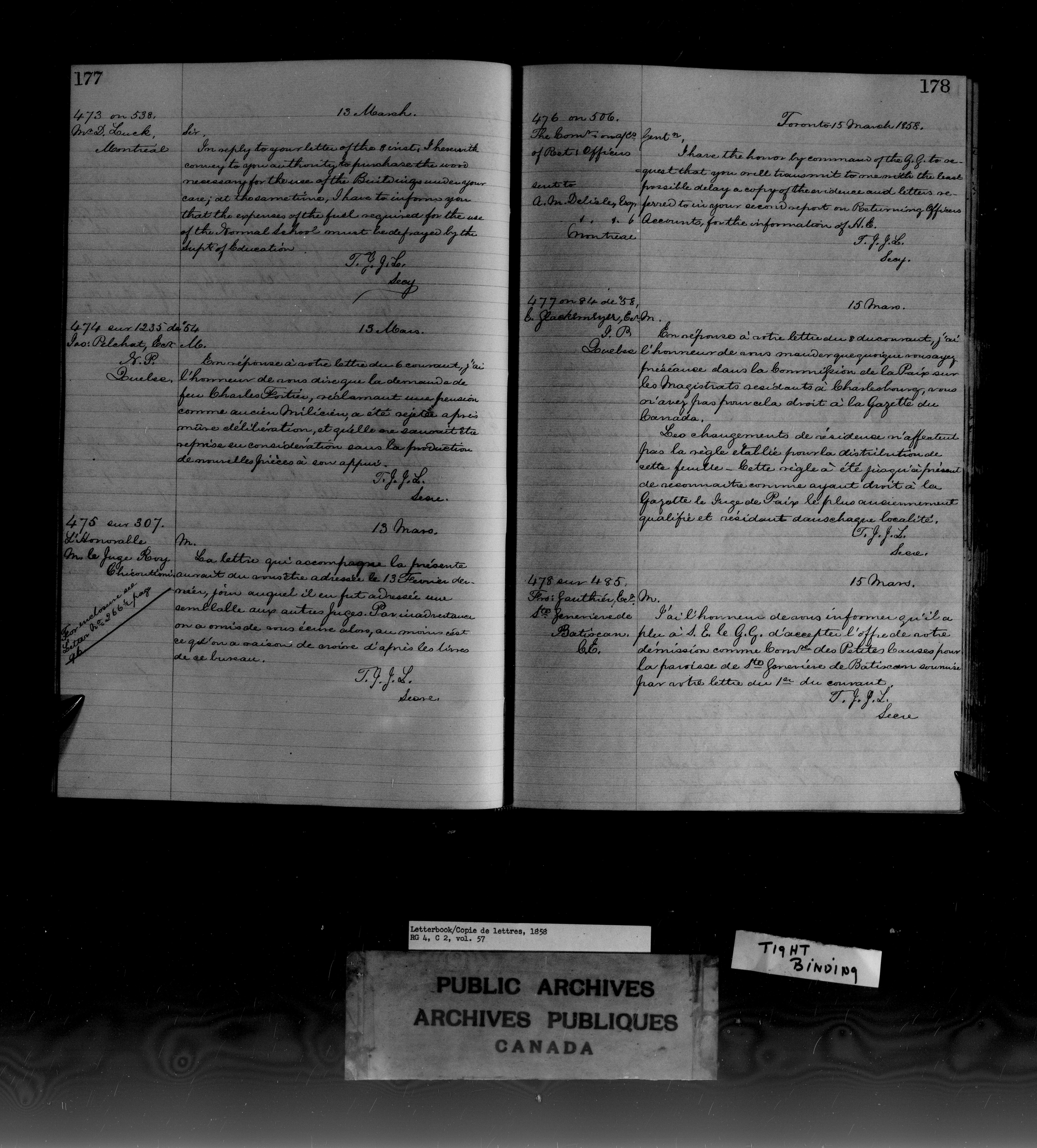 Provincial Secretary, Quebec, Lower Canada and Canada East : Letterbooks, 1763-1866 = Copies de lettres du Sécretaire provincial, Québec, Bas-Canada et Canada-Est, 1763-1866 - 10475