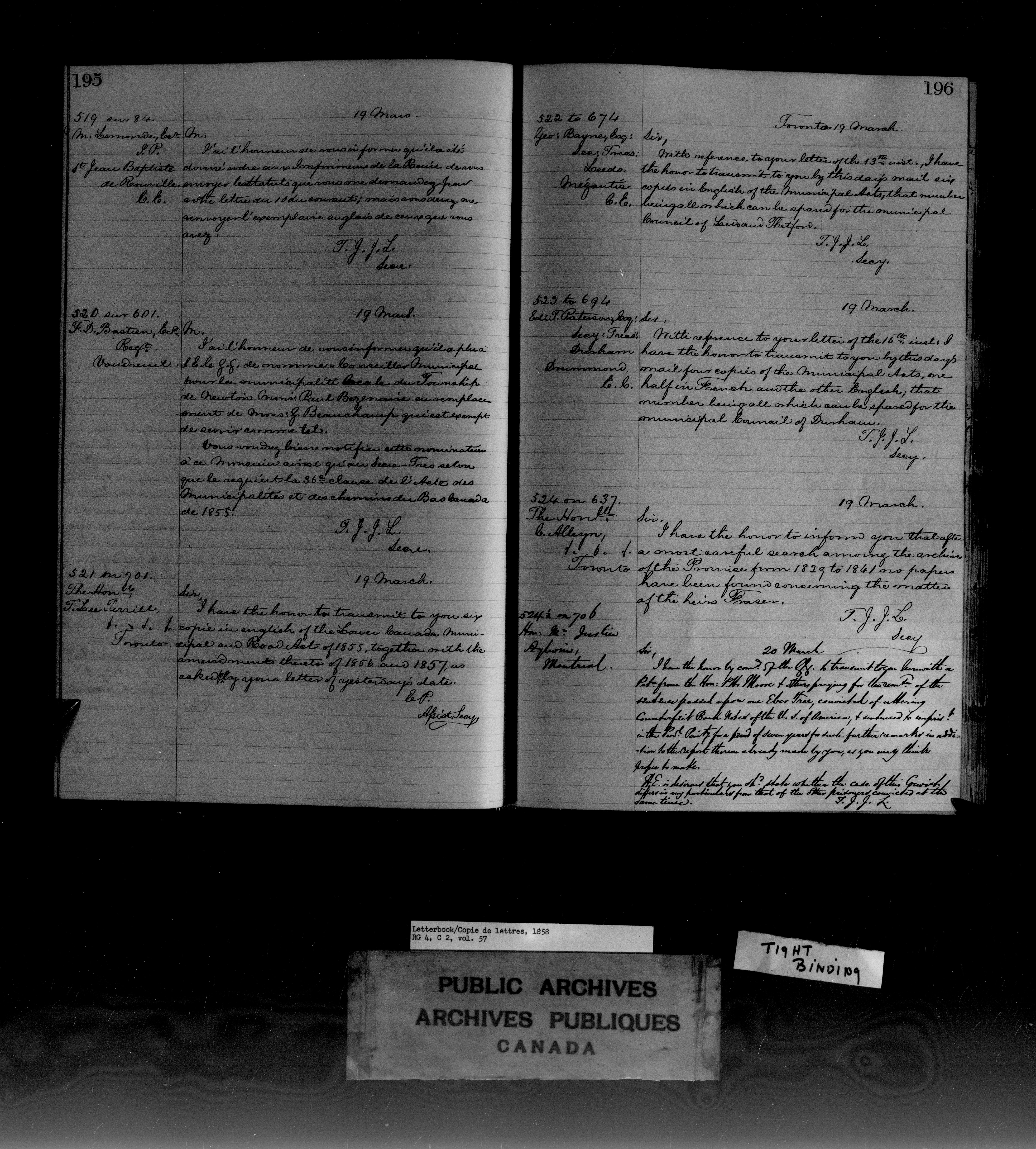 Provincial Secretary, Quebec, Lower Canada and Canada East : Letterbooks, 1763-1866 = Copies de lettres du Sécretaire provincial, Québec, Bas-Canada et Canada-Est, 1763-1866 - 10475