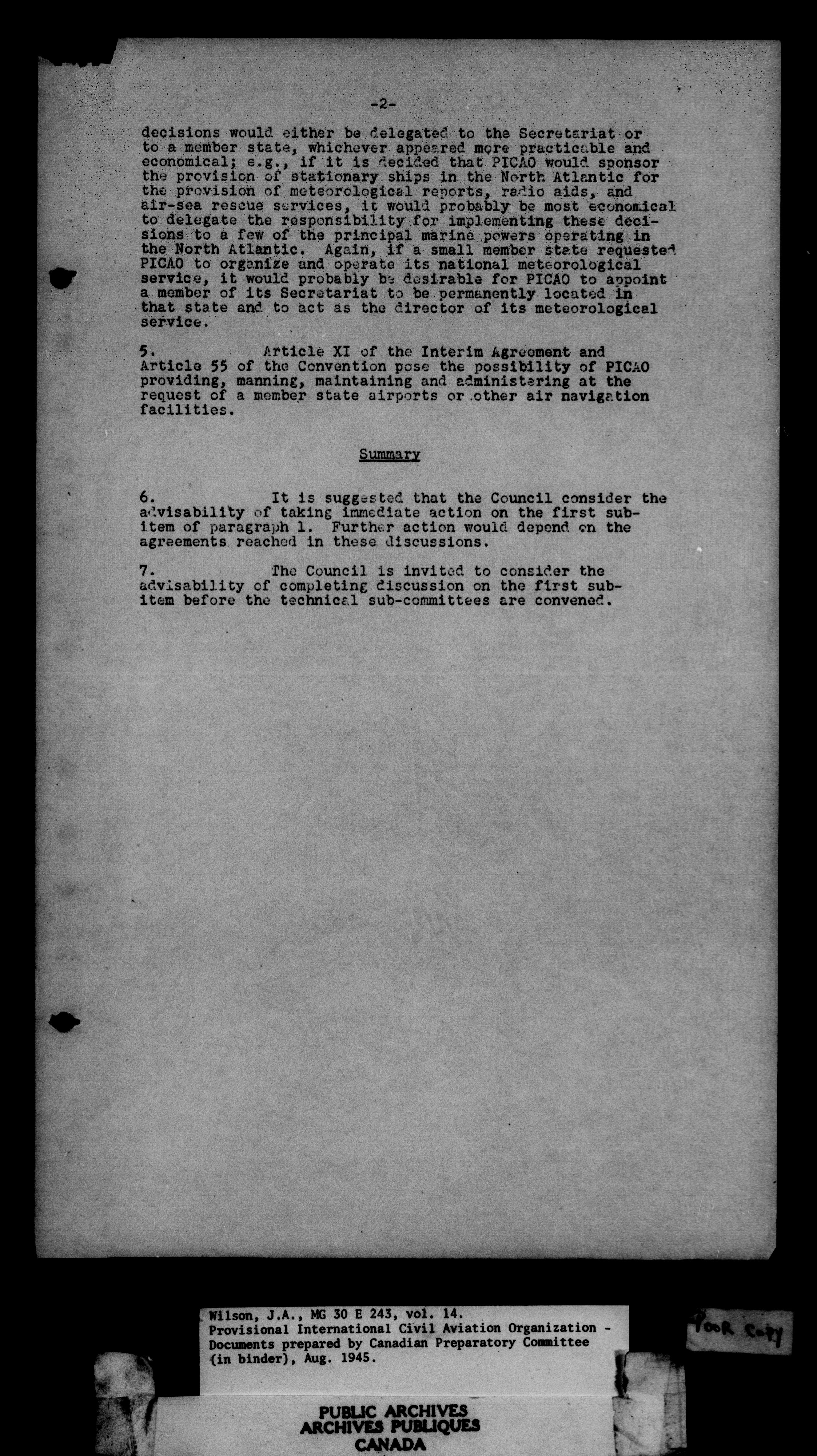 John Armistead Wilson Papers, special memoranda, 1919-1946 - 10485