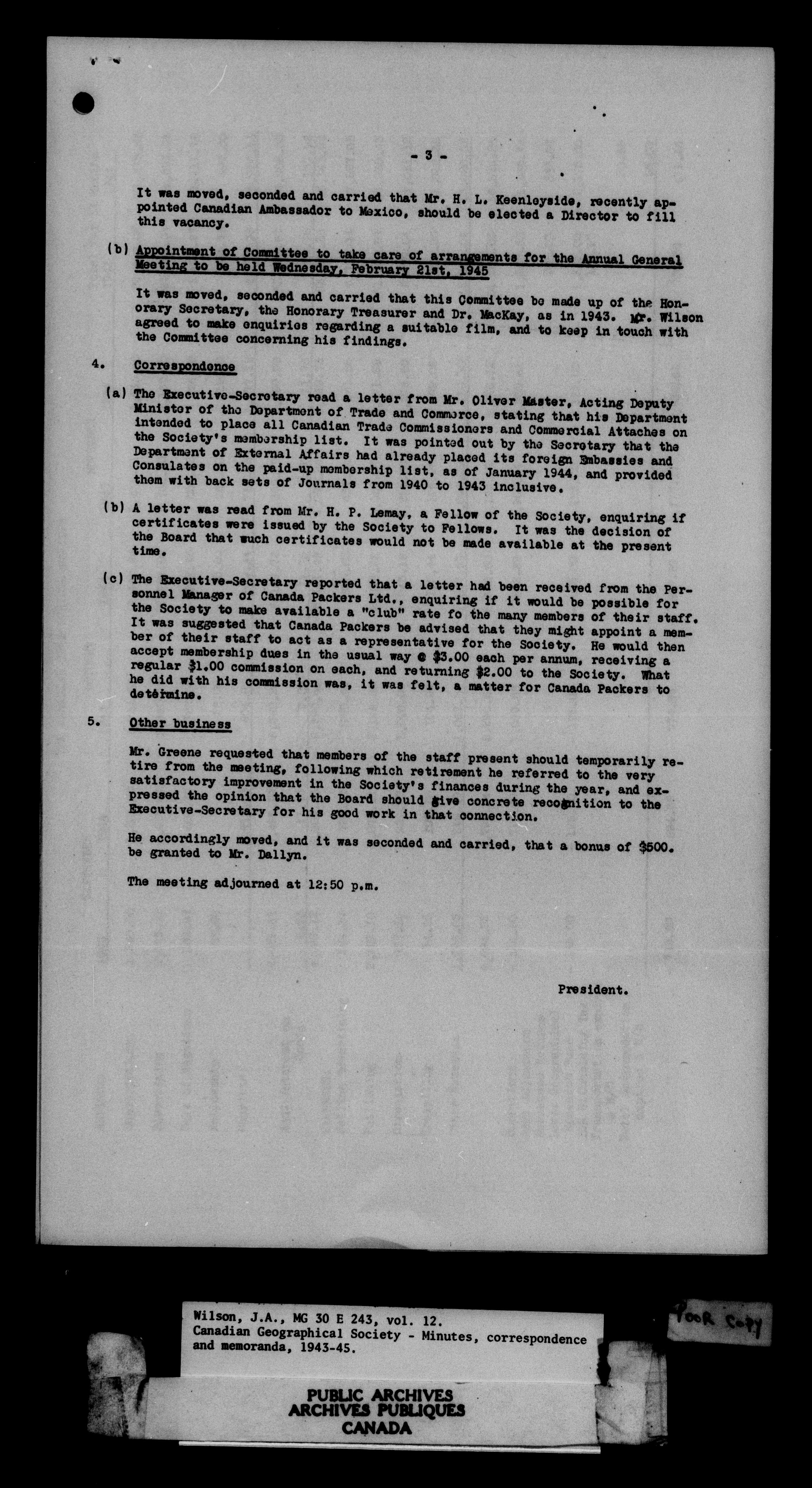 John Armistead Wilson Papers, special memoranda, 1919-1946 - 10485