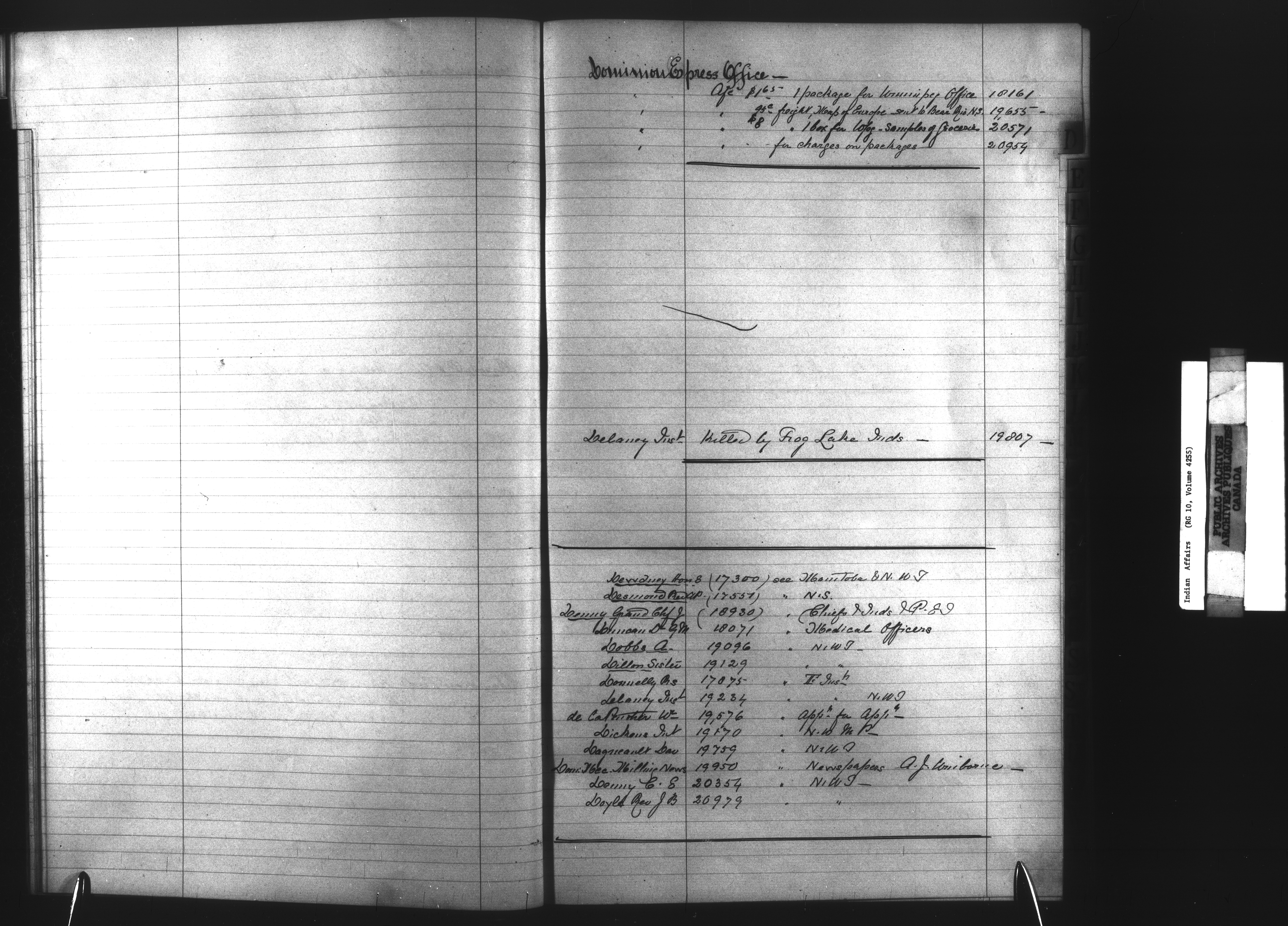Department of Indian Affairs, Headquarters central registry system :registers, indices and indexed registers : C-10487