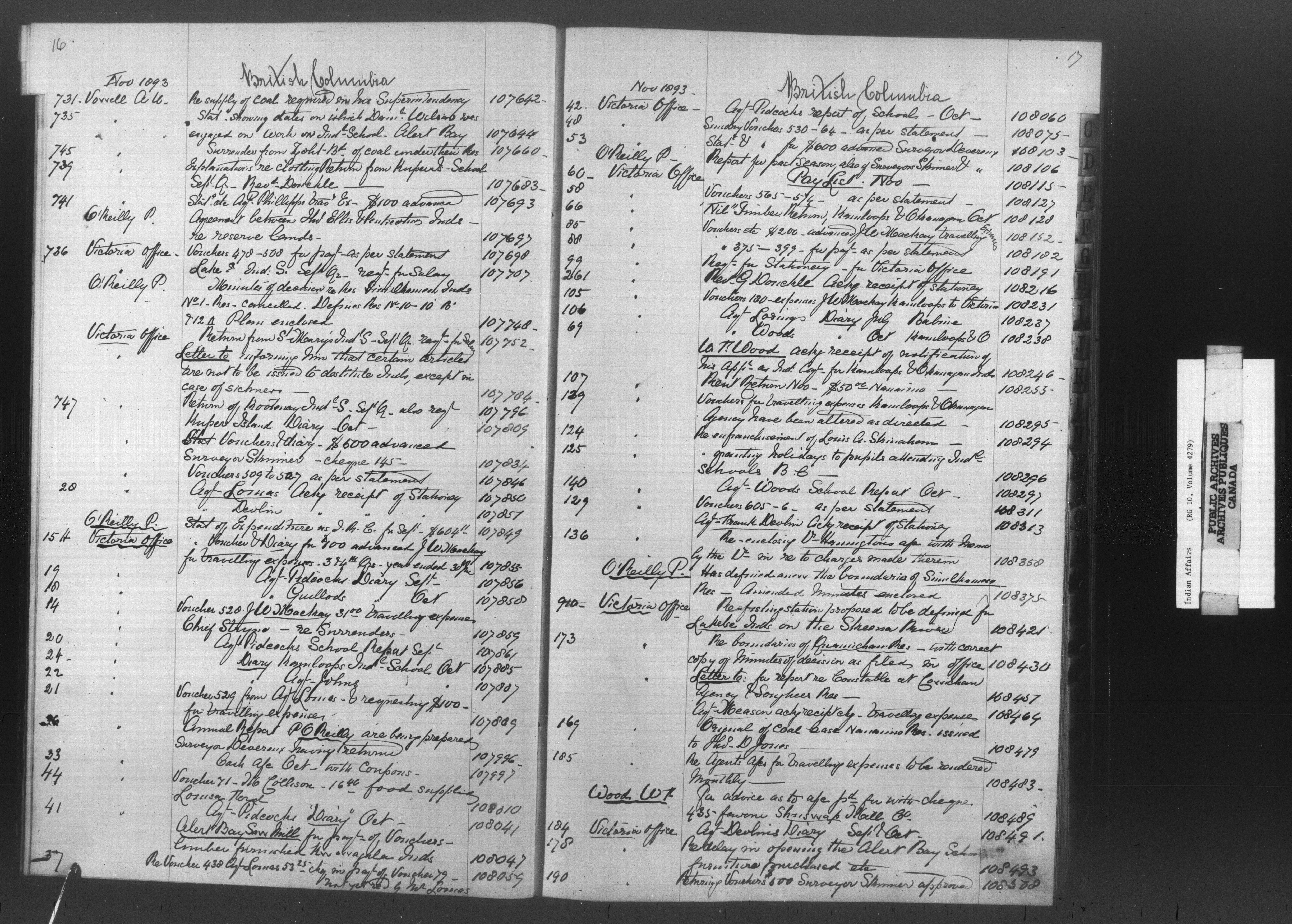 Department of Indian Affairs, Headquarters central registry system :registers, indices and indexed registers : C-10492