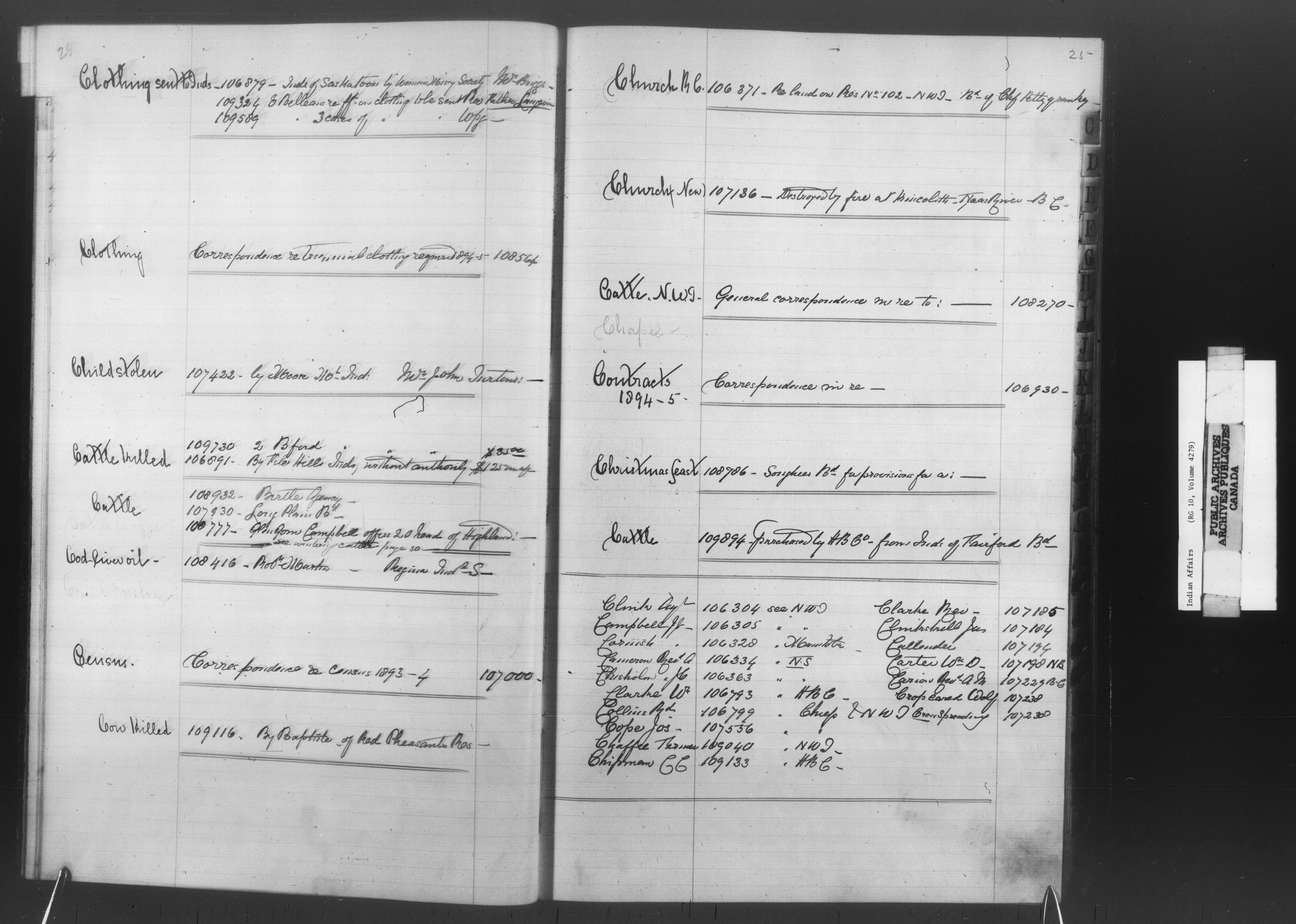 Department of Indian Affairs, Headquarters central registry system :registers, indices and indexed registers : C-10492