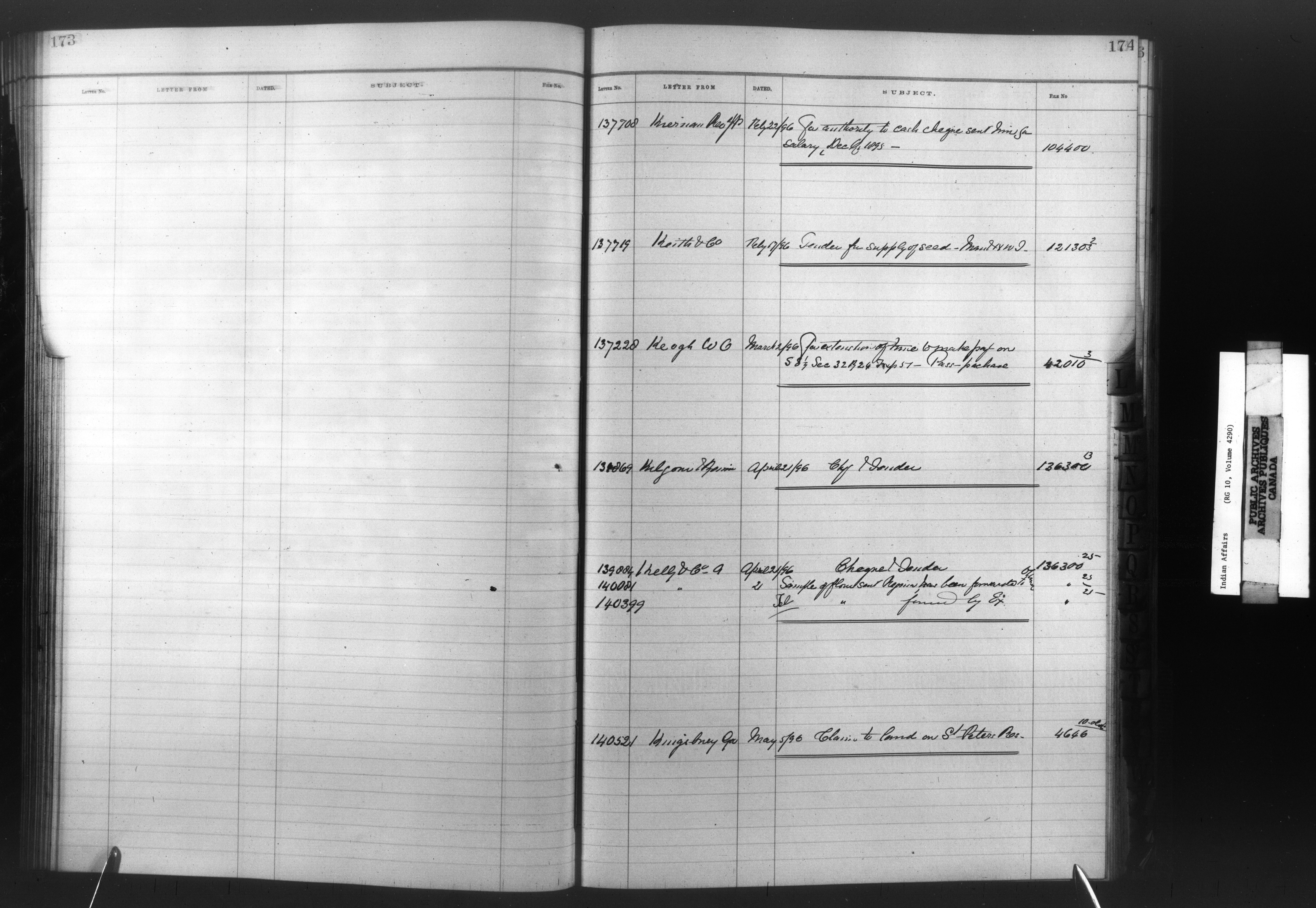 Department of Indian Affairs : Registers, indices and indexed registers to the Black Series - 10494