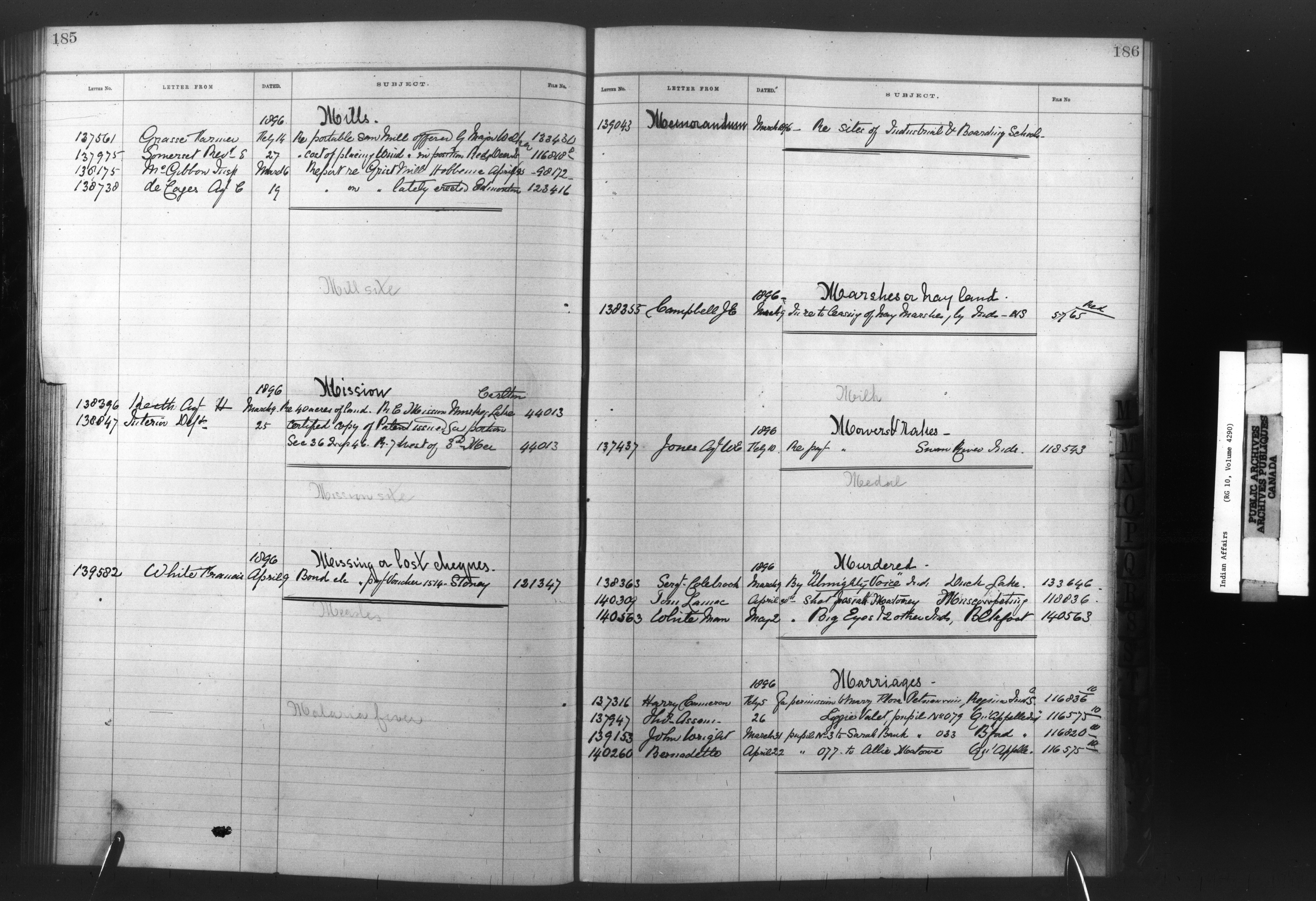 Department of Indian Affairs, Headquarters central registry system :registers, indices and indexed registers : C-10494