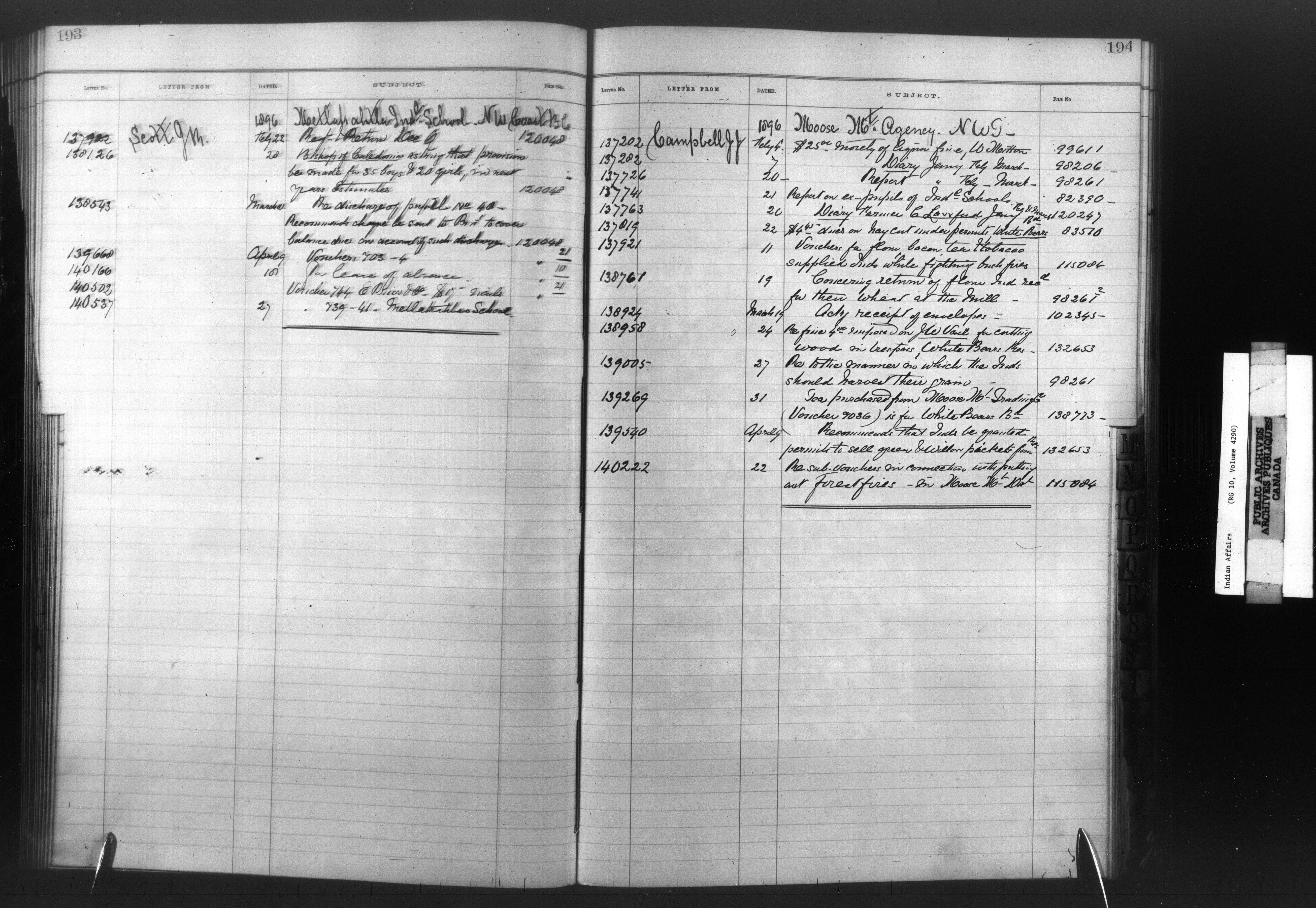 Department of Indian Affairs : Registers, indices and indexed registers to the Black Series - 10494