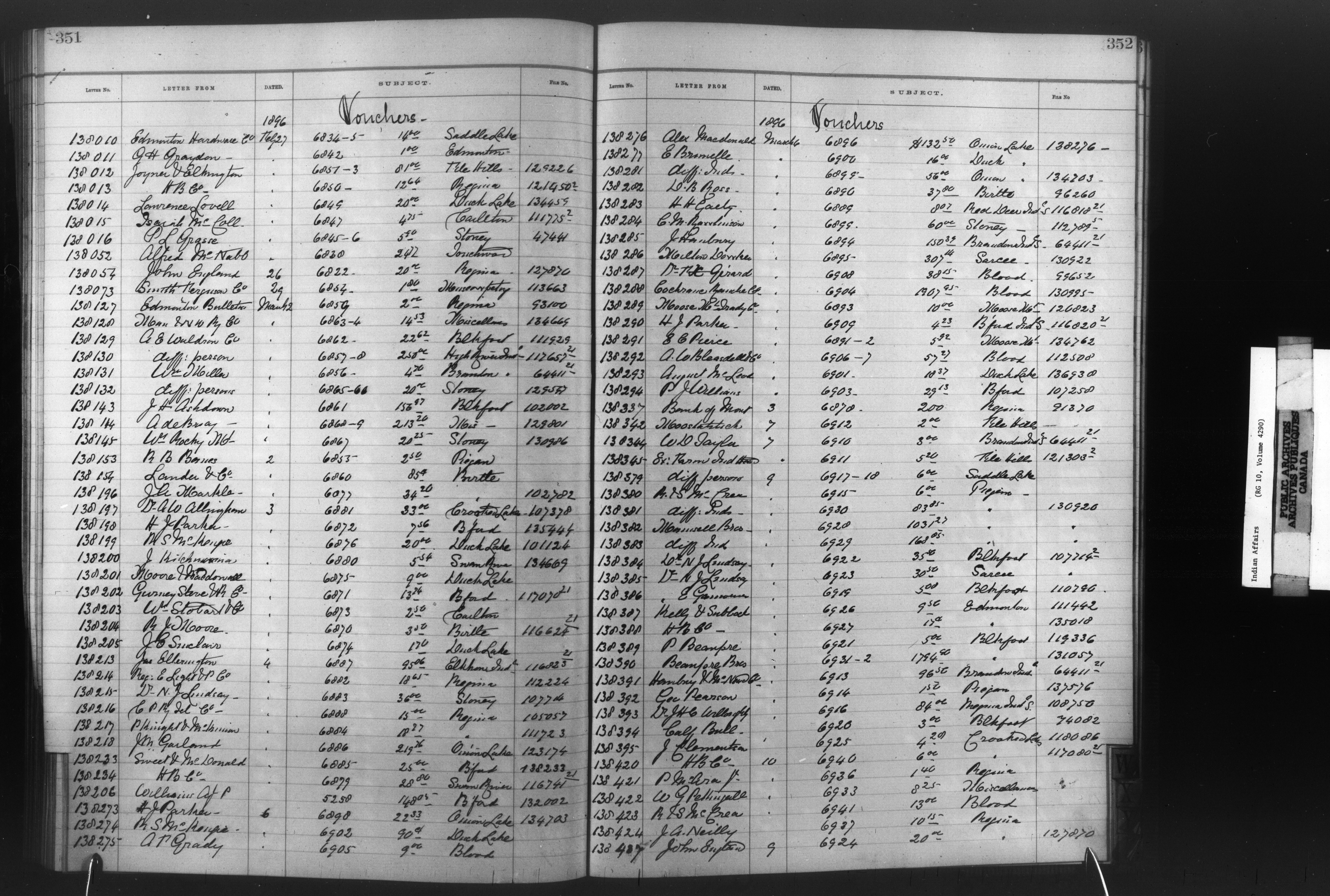 Department of Indian Affairs, Headquarters central registry system :registers, indices and indexed registers : C-10494