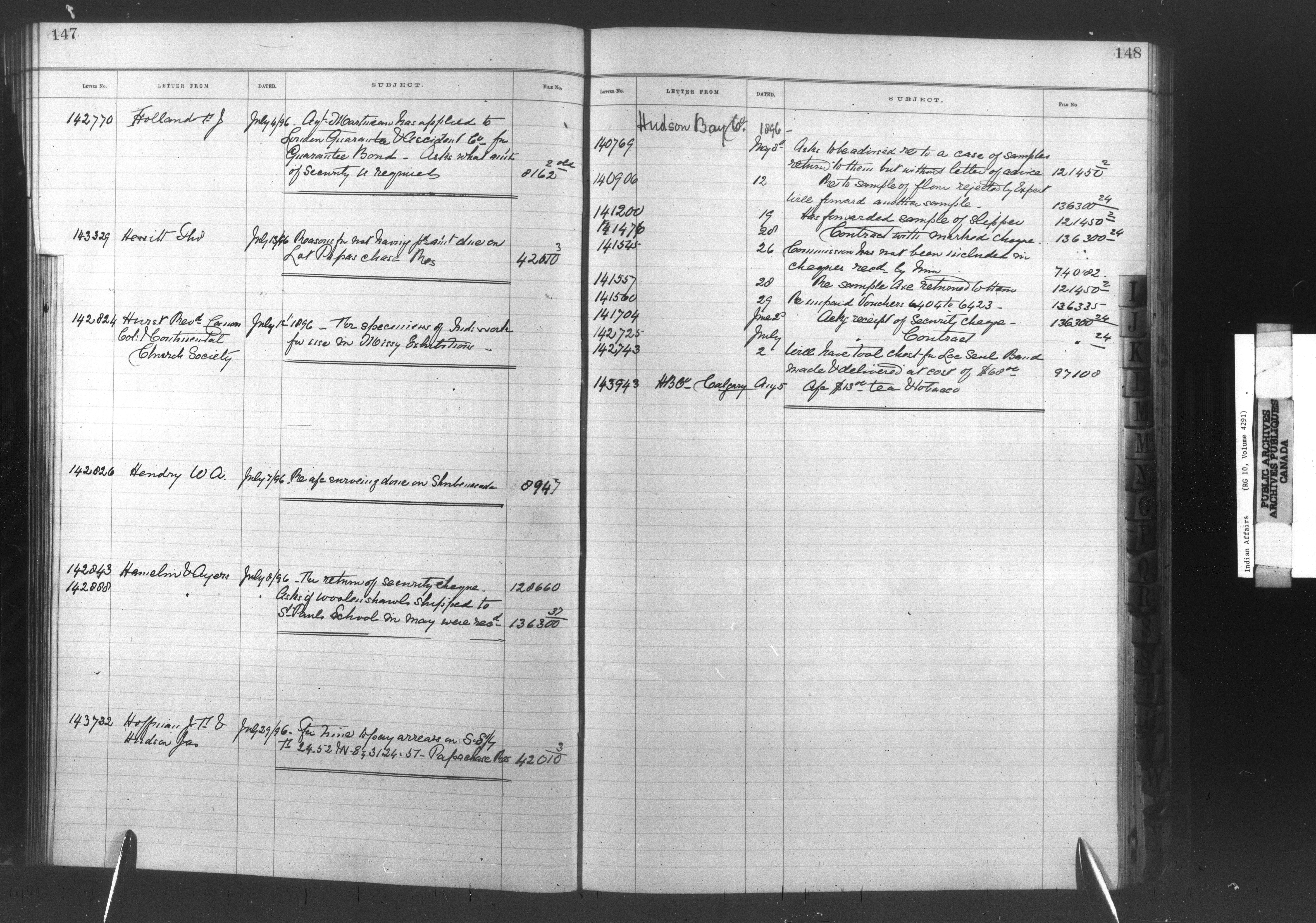 Department of Indian Affairs, Headquarters central registry system :registers, indices and indexed registers : C-10495