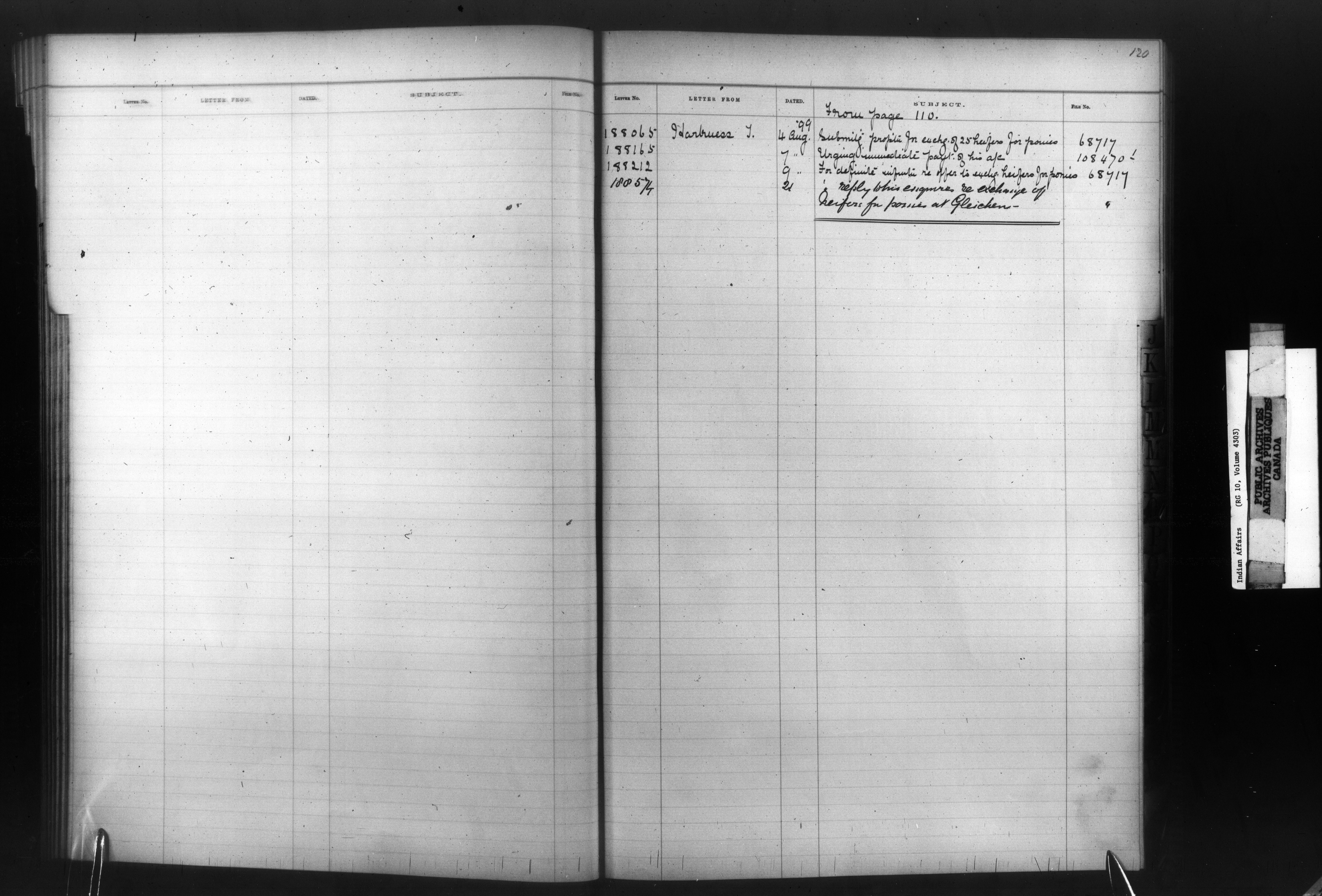 Department of Indian Affairs : Registers, indices and indexed registers to the Black Series - 10498