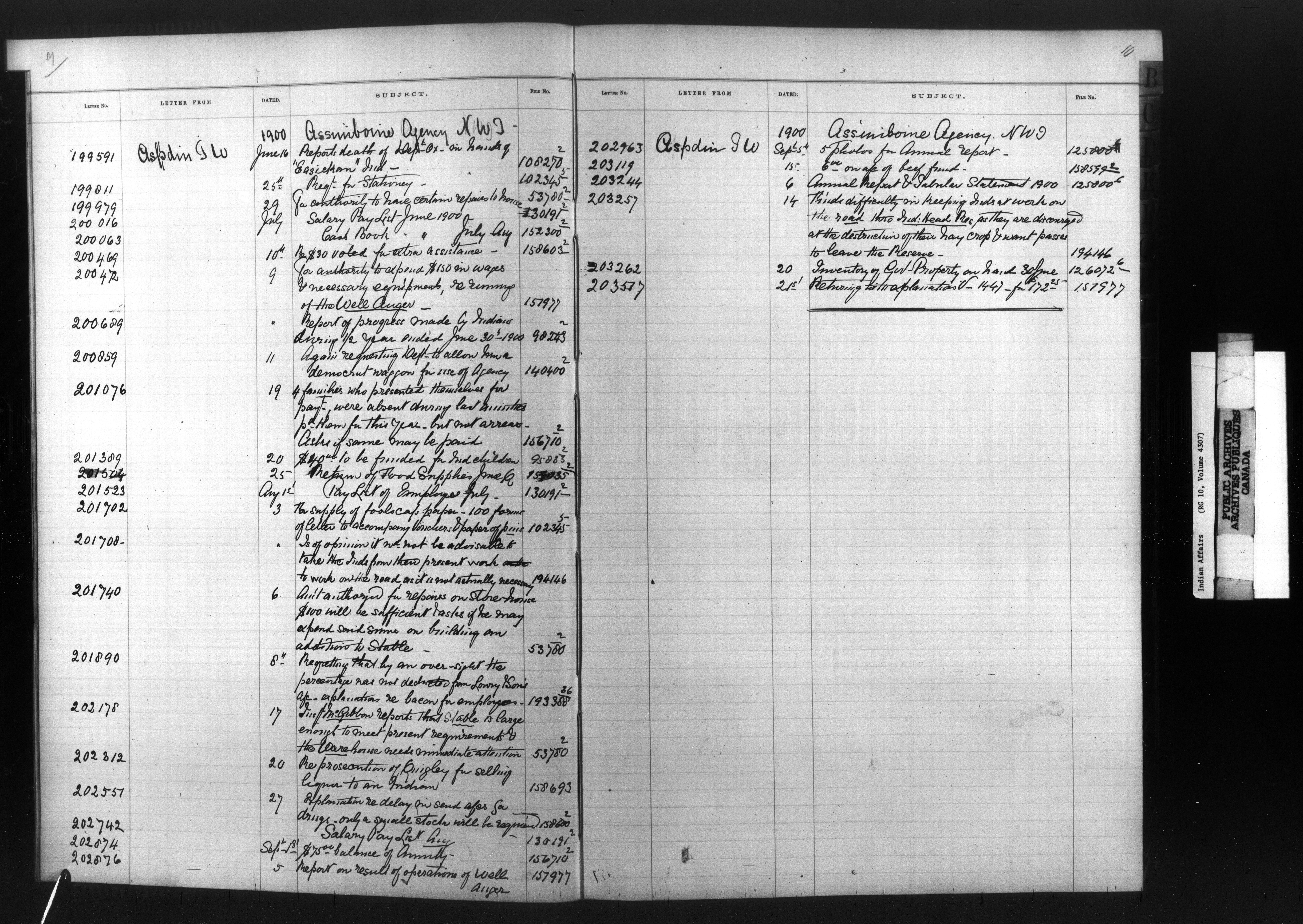 Department of Indian Affairs, Headquarters central registry system :registers, indices and indexed registers : C-10499