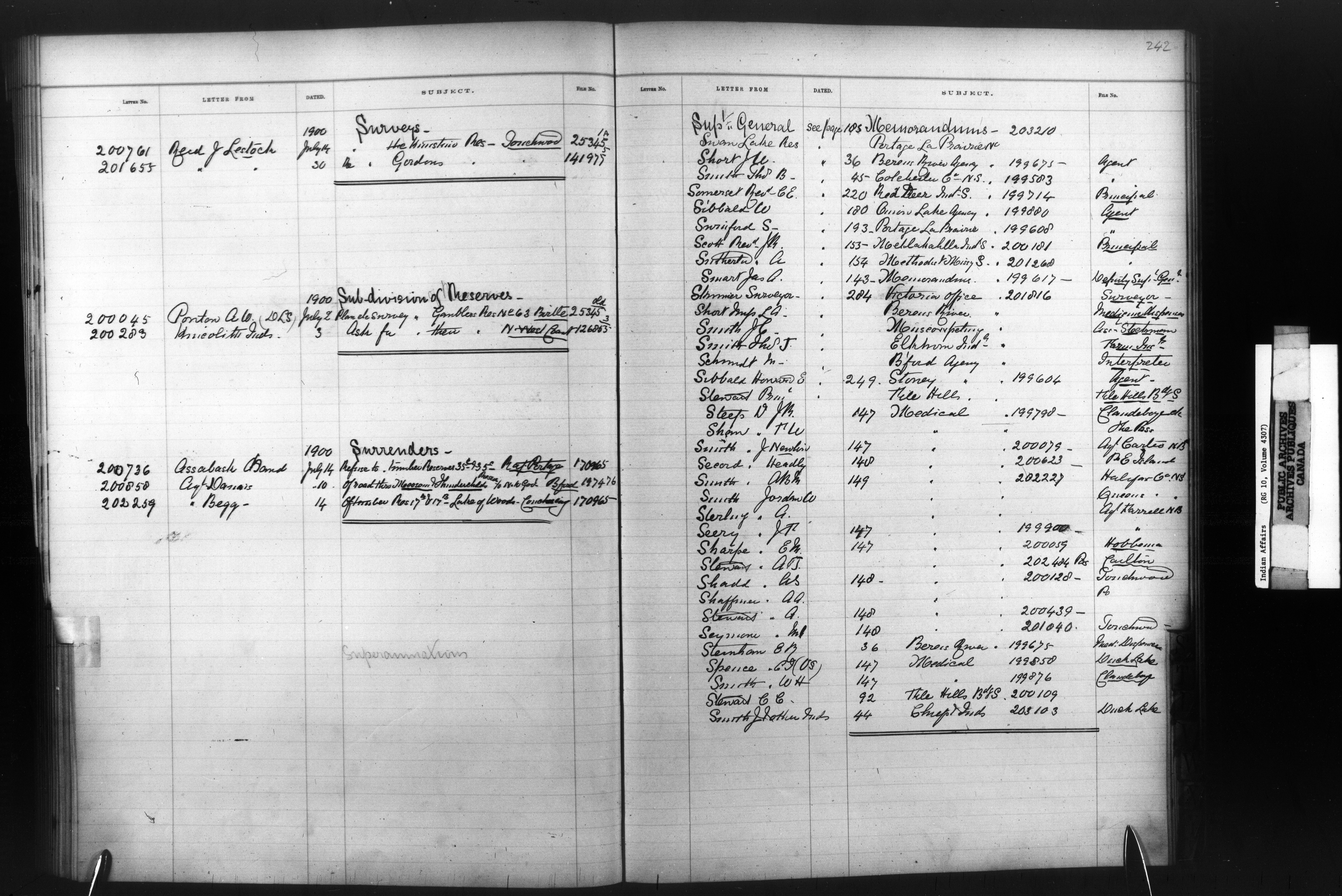 Department of Indian Affairs, Headquarters central registry system :registers, indices and indexed registers : C-10500