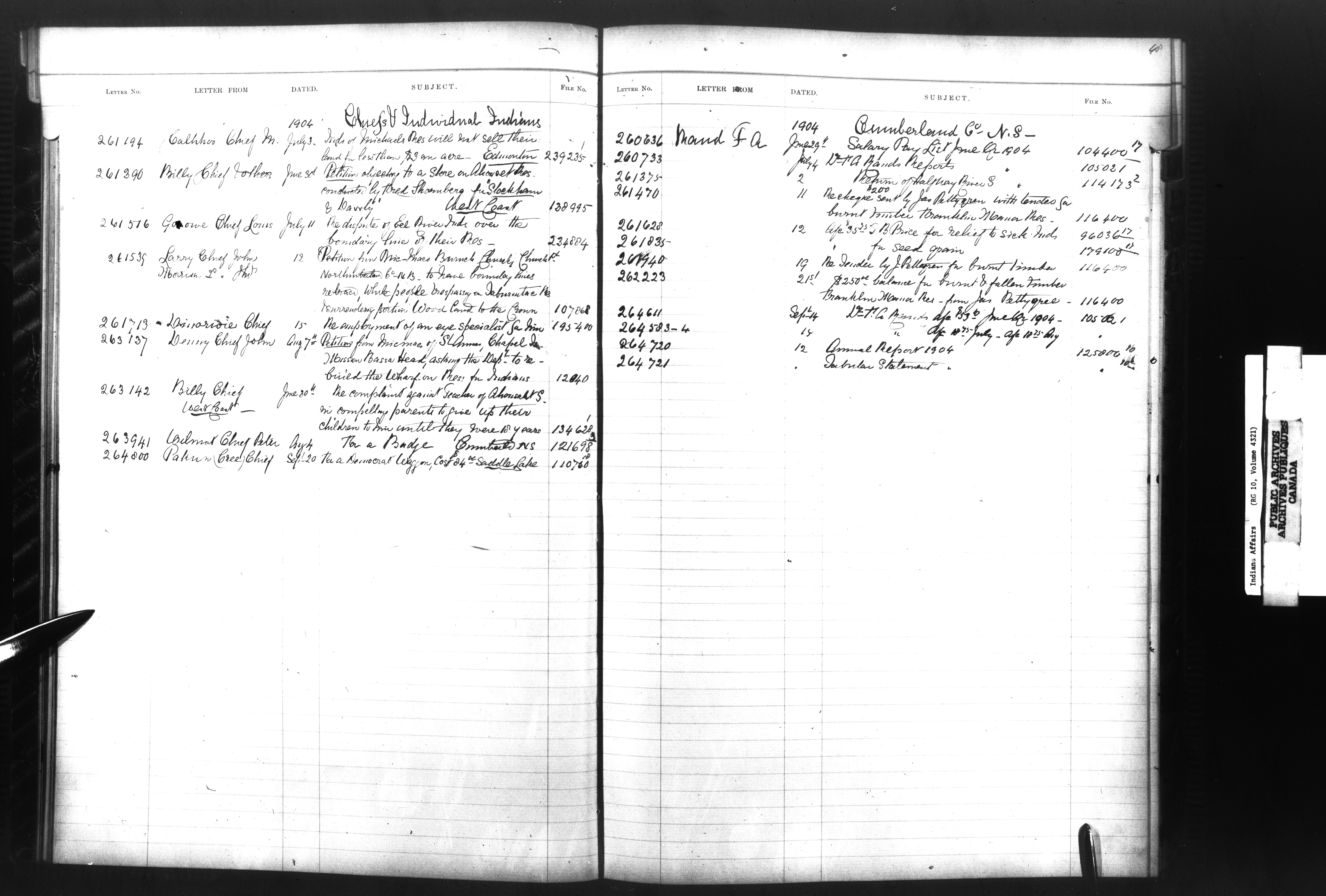 Department of Indian Affairs : Registers, indices and indexed registers to the Black Series - 10503