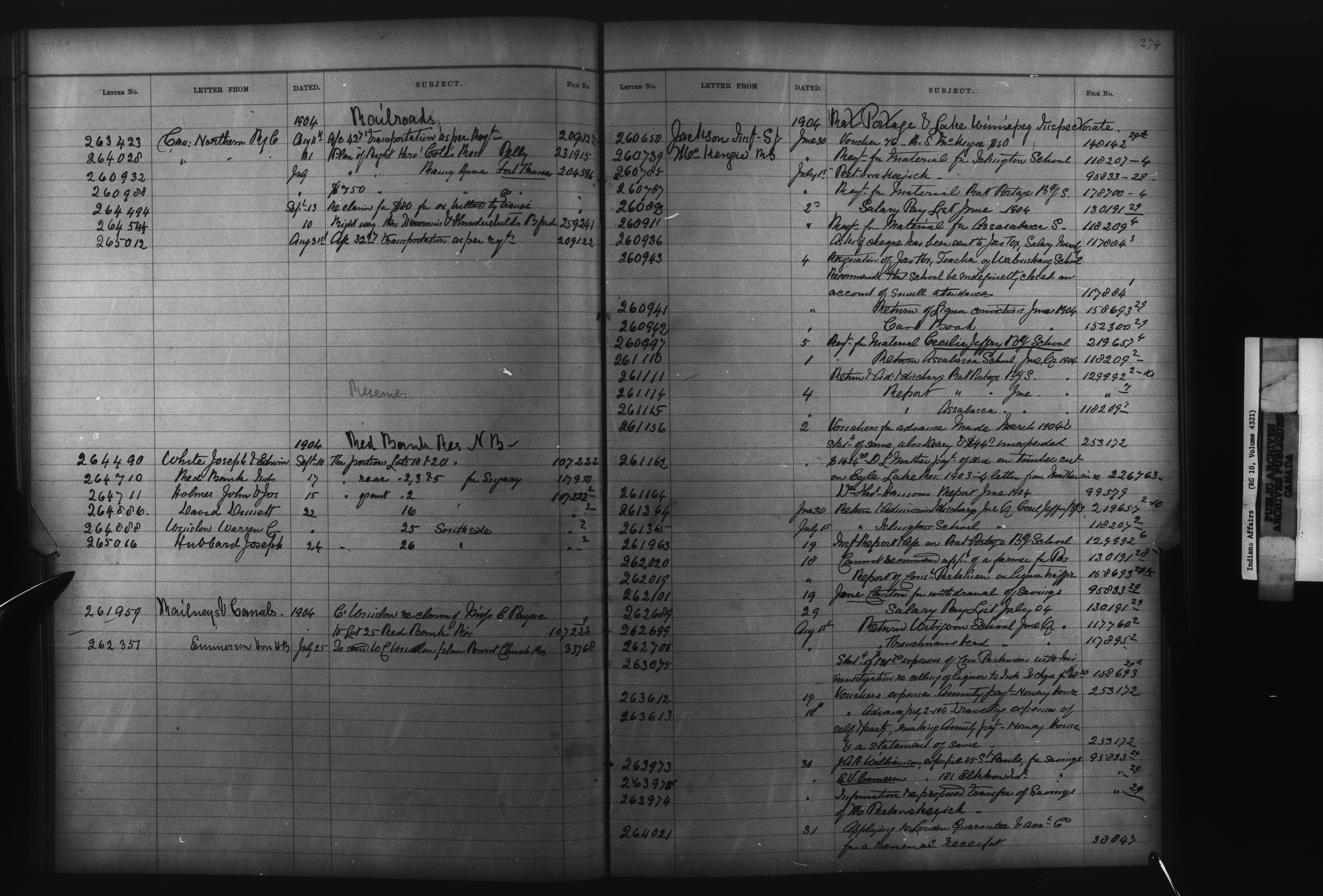 Department of Indian Affairs, Headquarters central registry system :registers, indices and indexed registers : C-10504