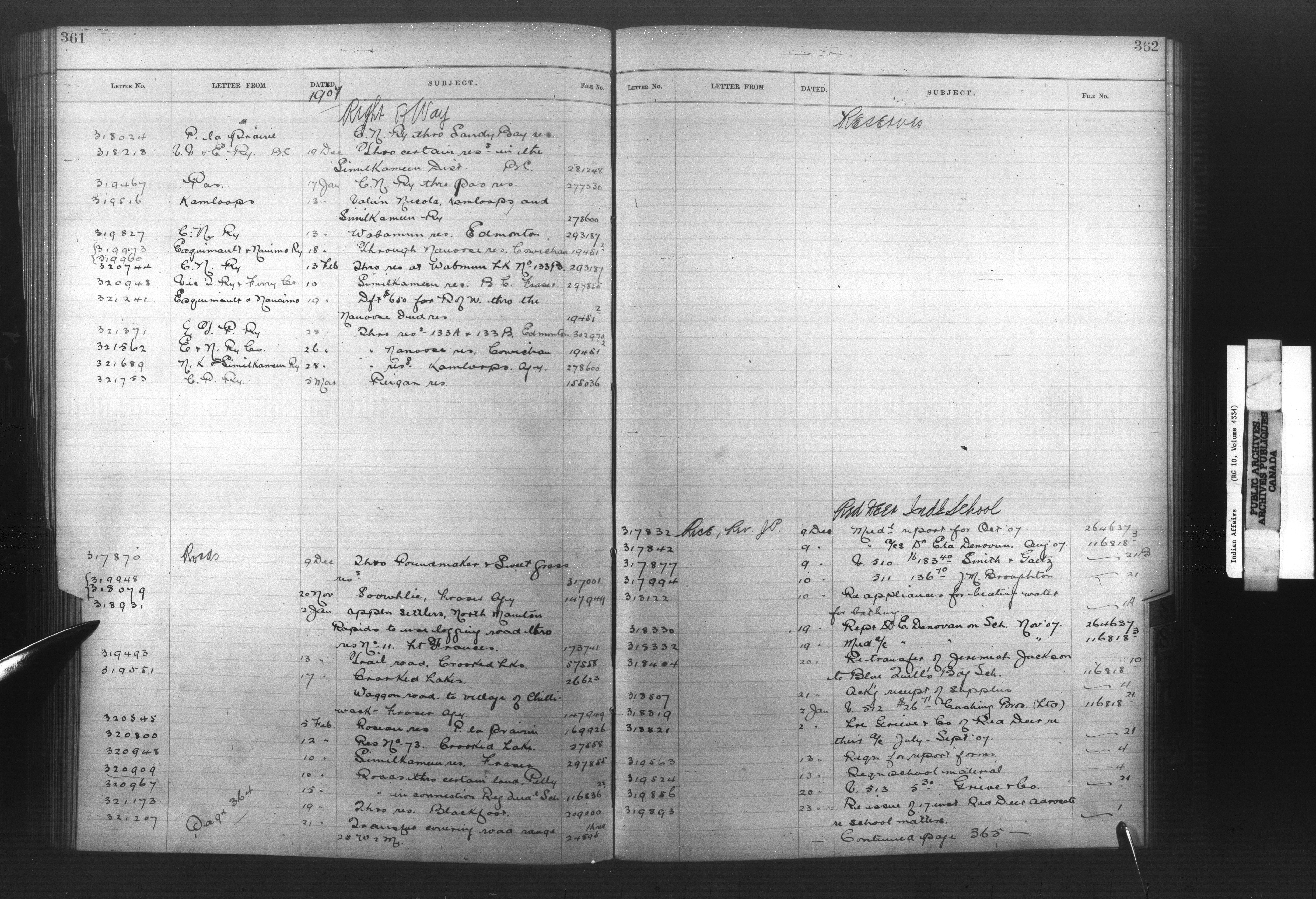 Department of Indian Affairs, Headquarters central registry system :registers, indices and indexed registers : C-10507