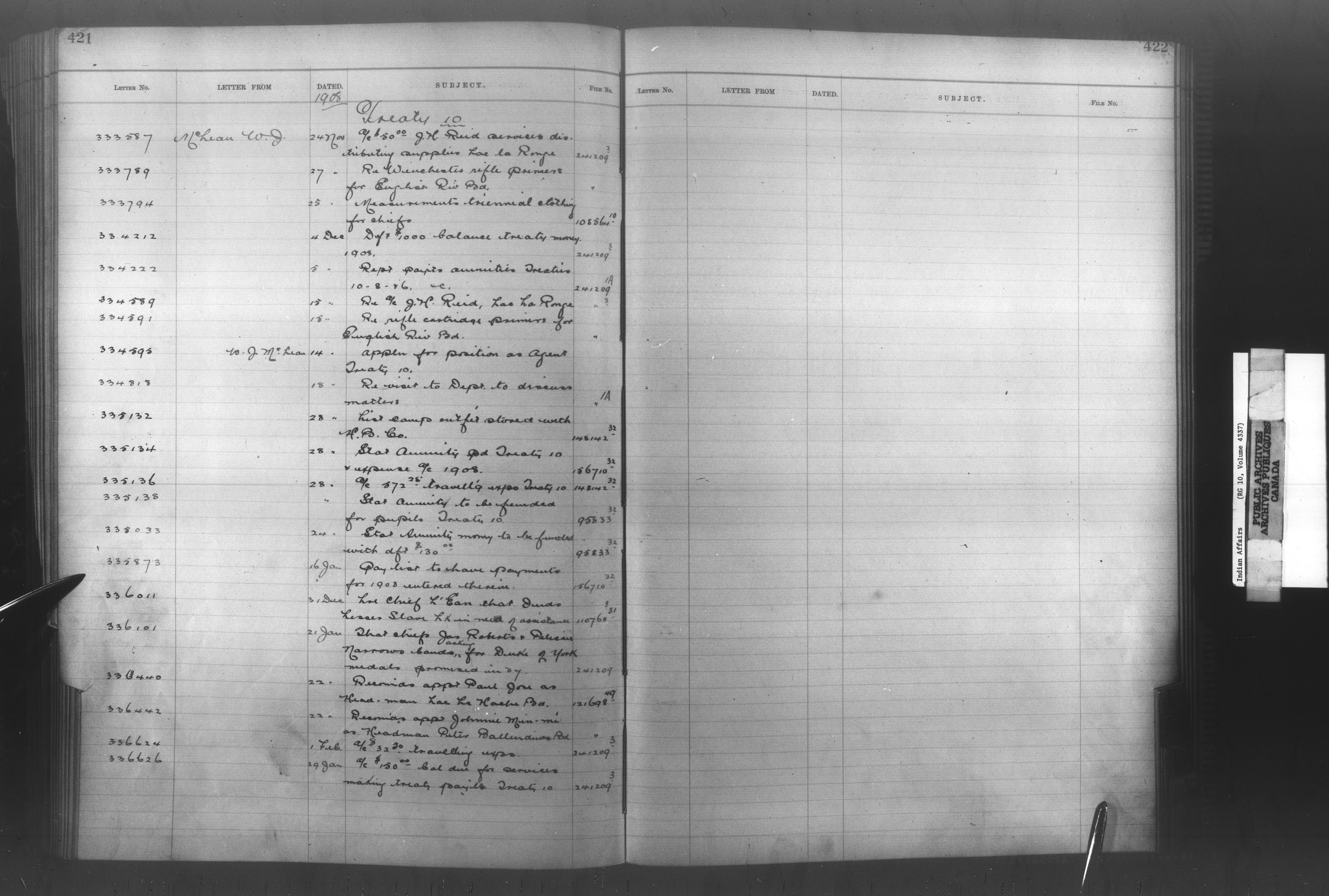 Department of Indian Affairs : Registers, indices and indexed registers to the Black Series - 10509