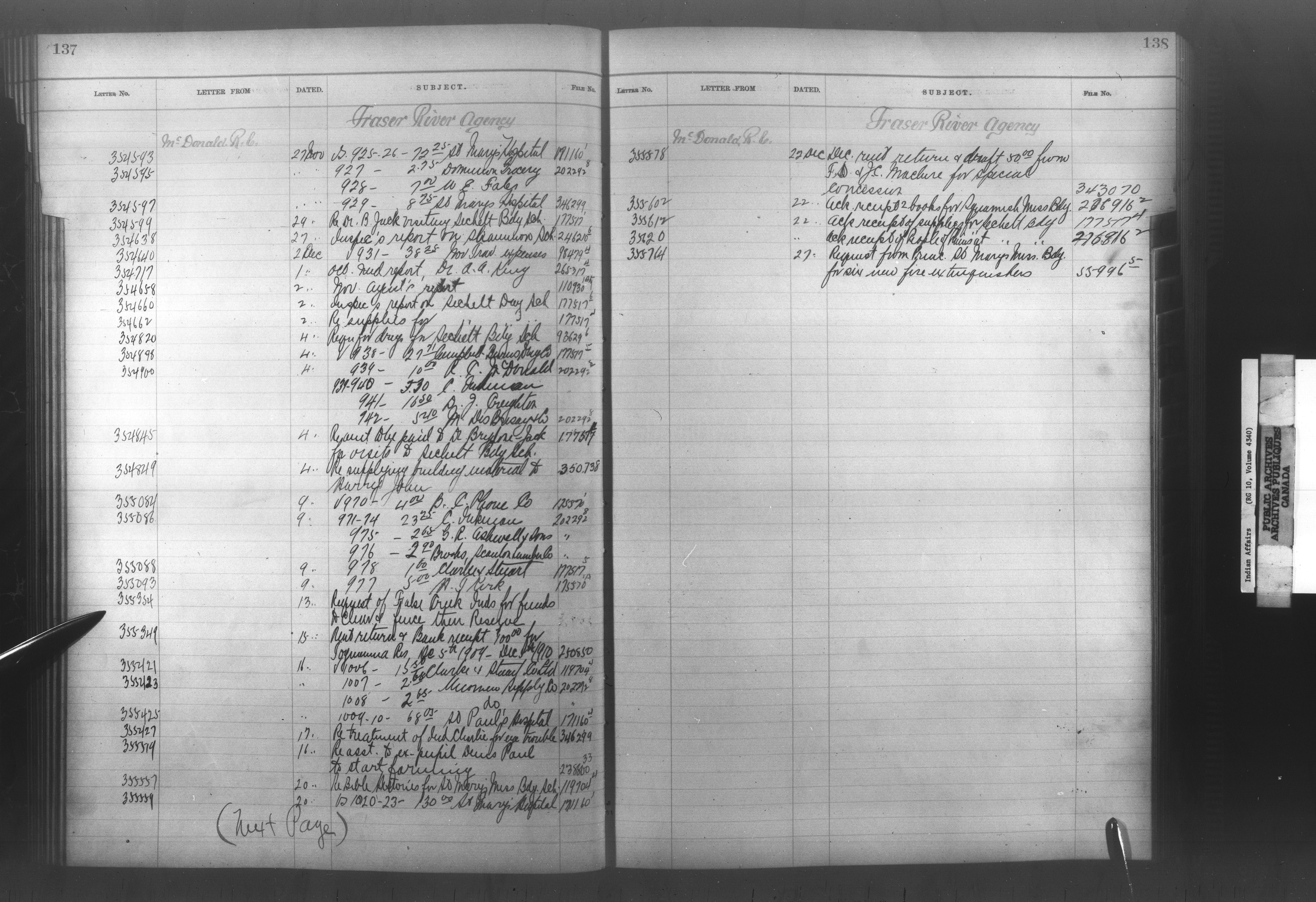 Department of Indian Affairs : Registers, indices and indexed registers to the Black Series - 10509