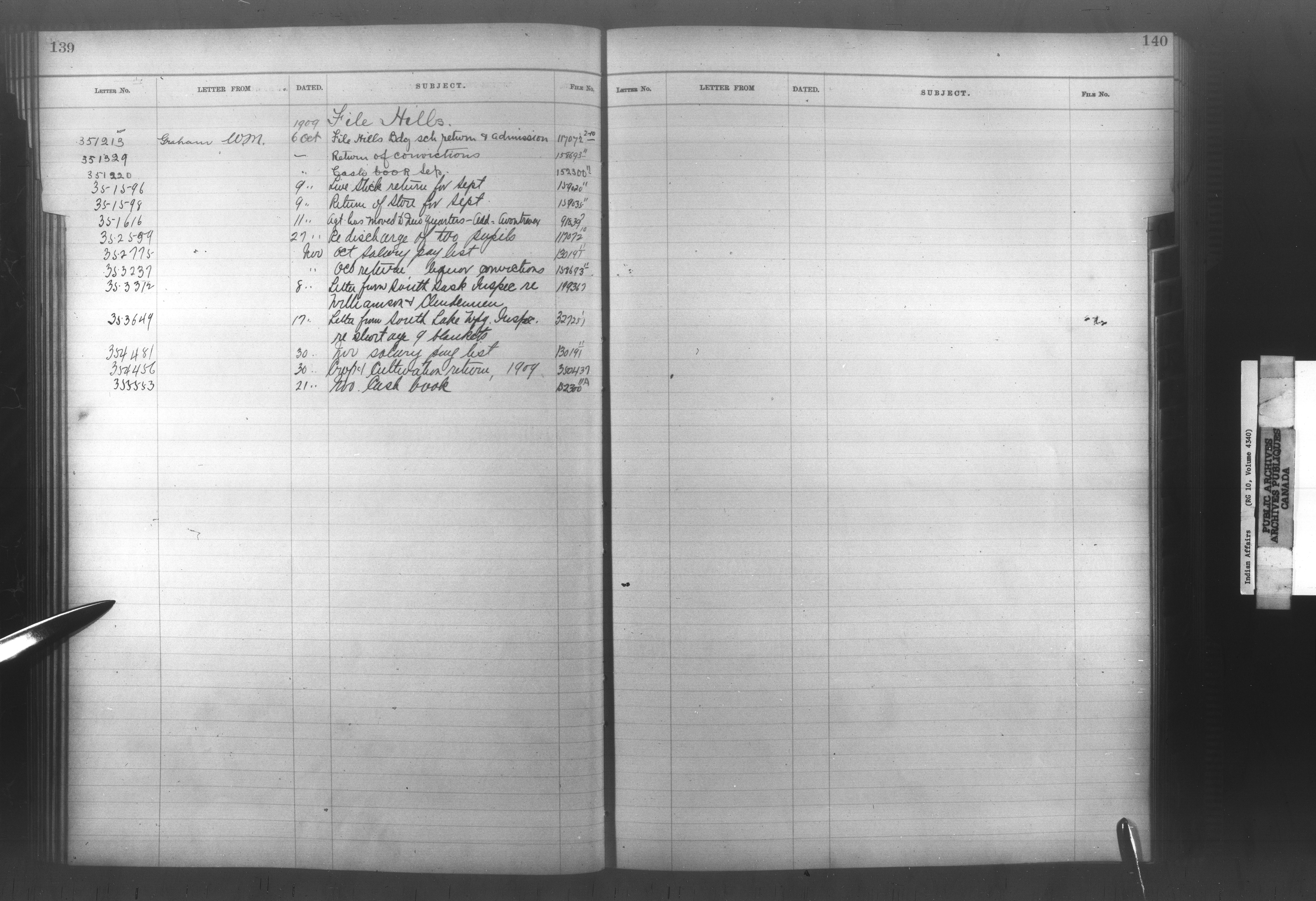 Department of Indian Affairs : Registers, indices and indexed registers to the Black Series - 10509
