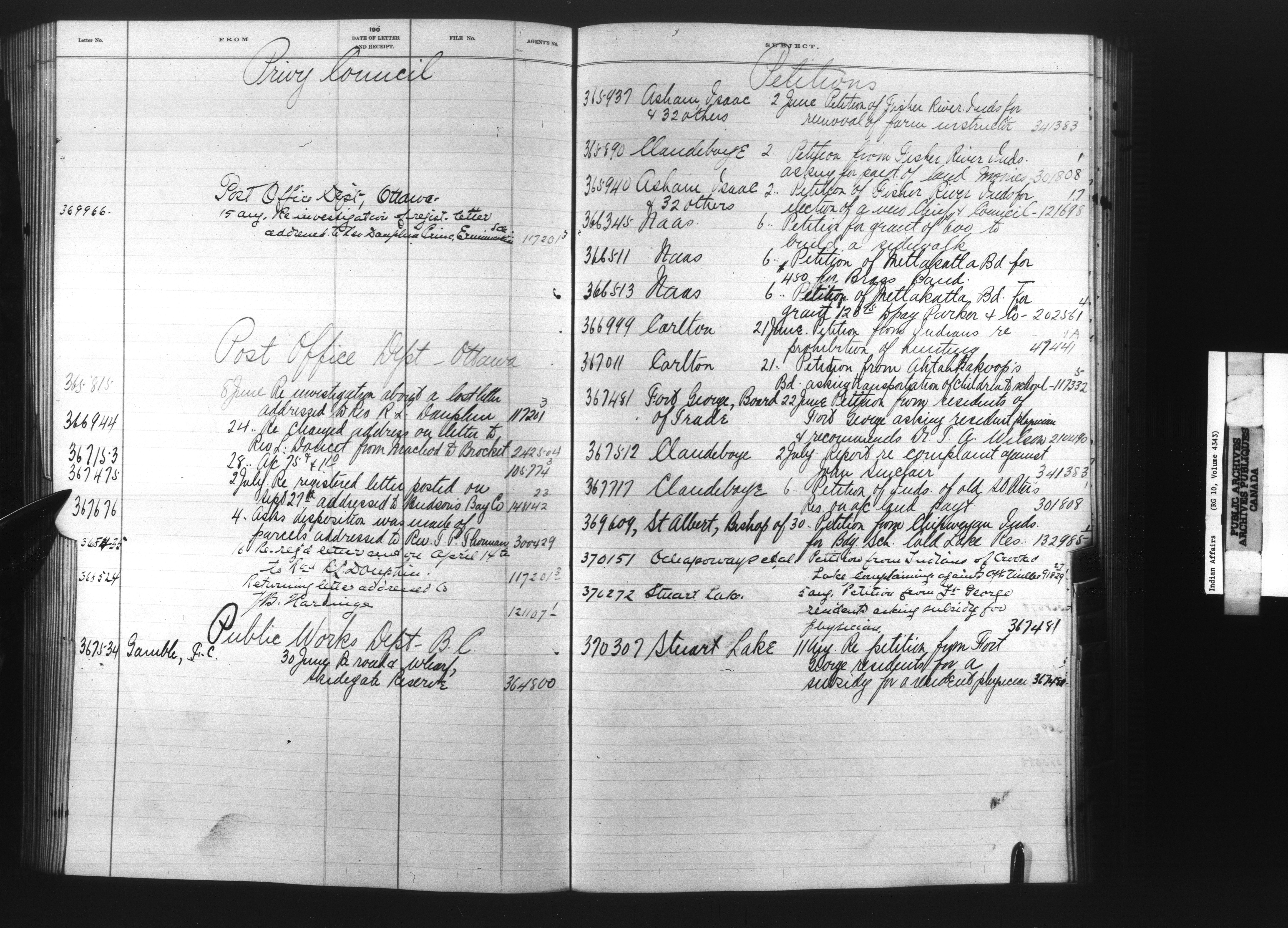 Department of Indian Affairs : Registers, indices and indexed registers to the Black Series - 10511