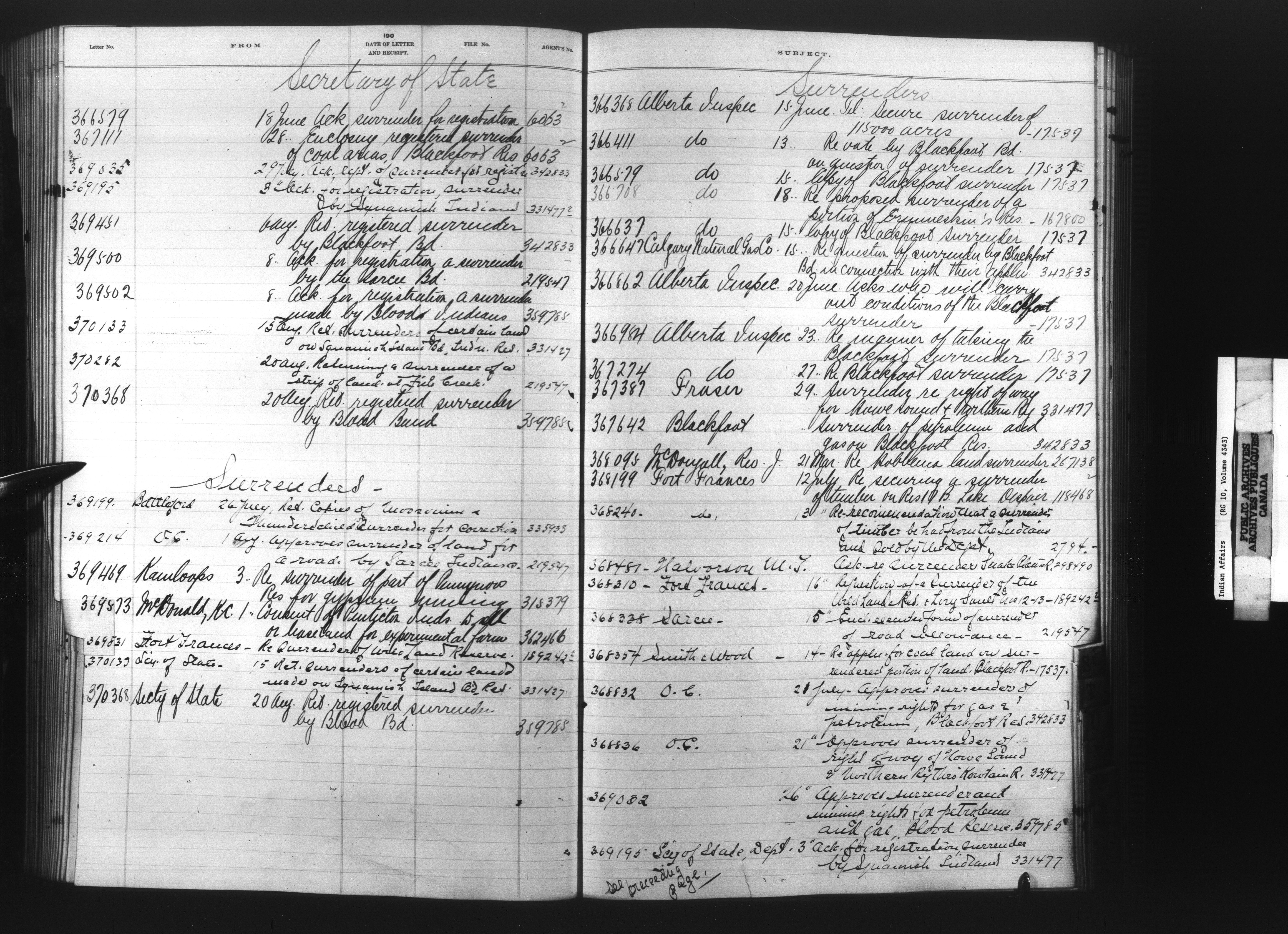 Department of Indian Affairs : Registers, indices and indexed registers to the Black Series - 10511