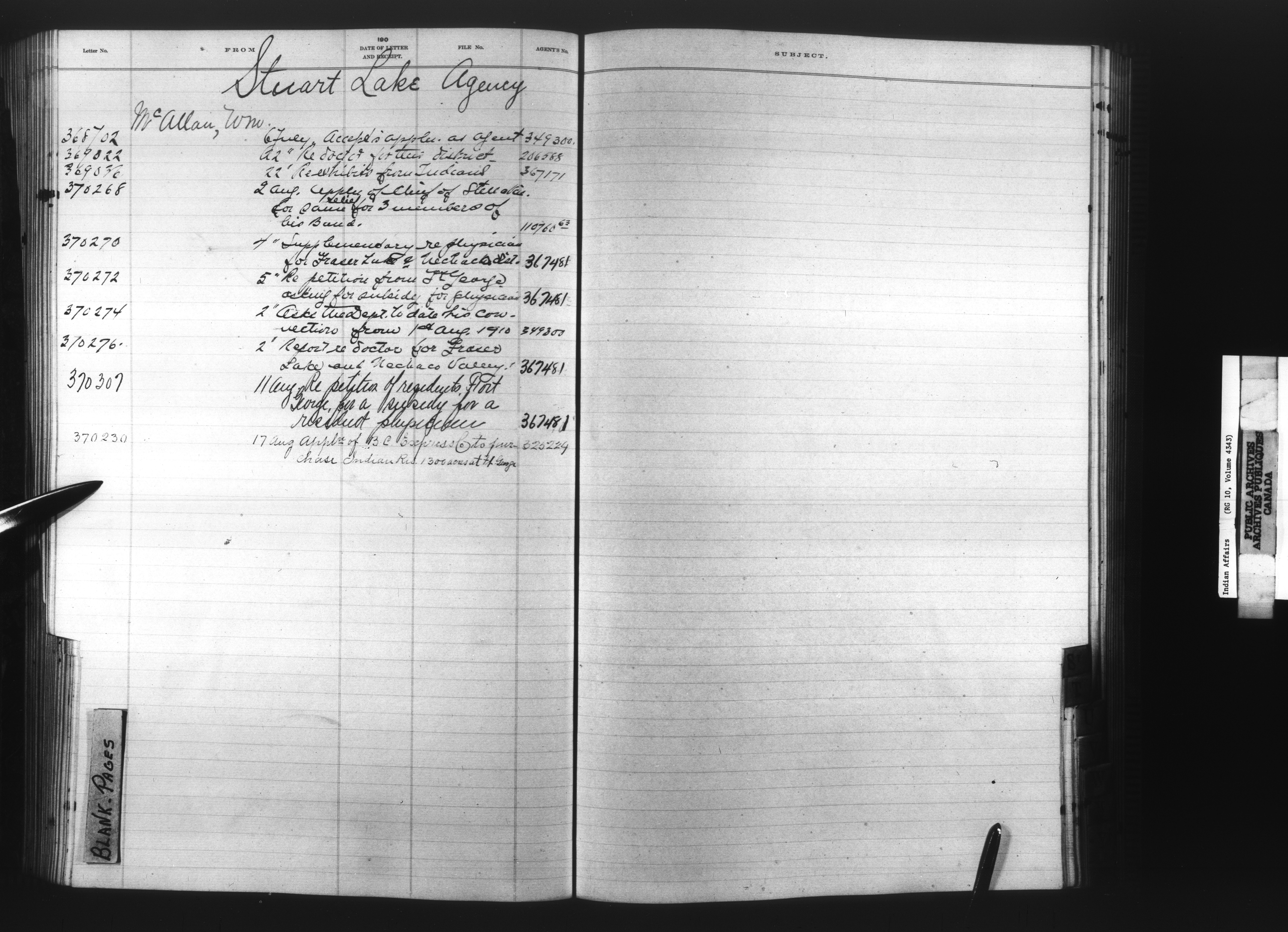 Department of Indian Affairs, Headquarters central registry system :registers, indices and indexed registers : C-10511