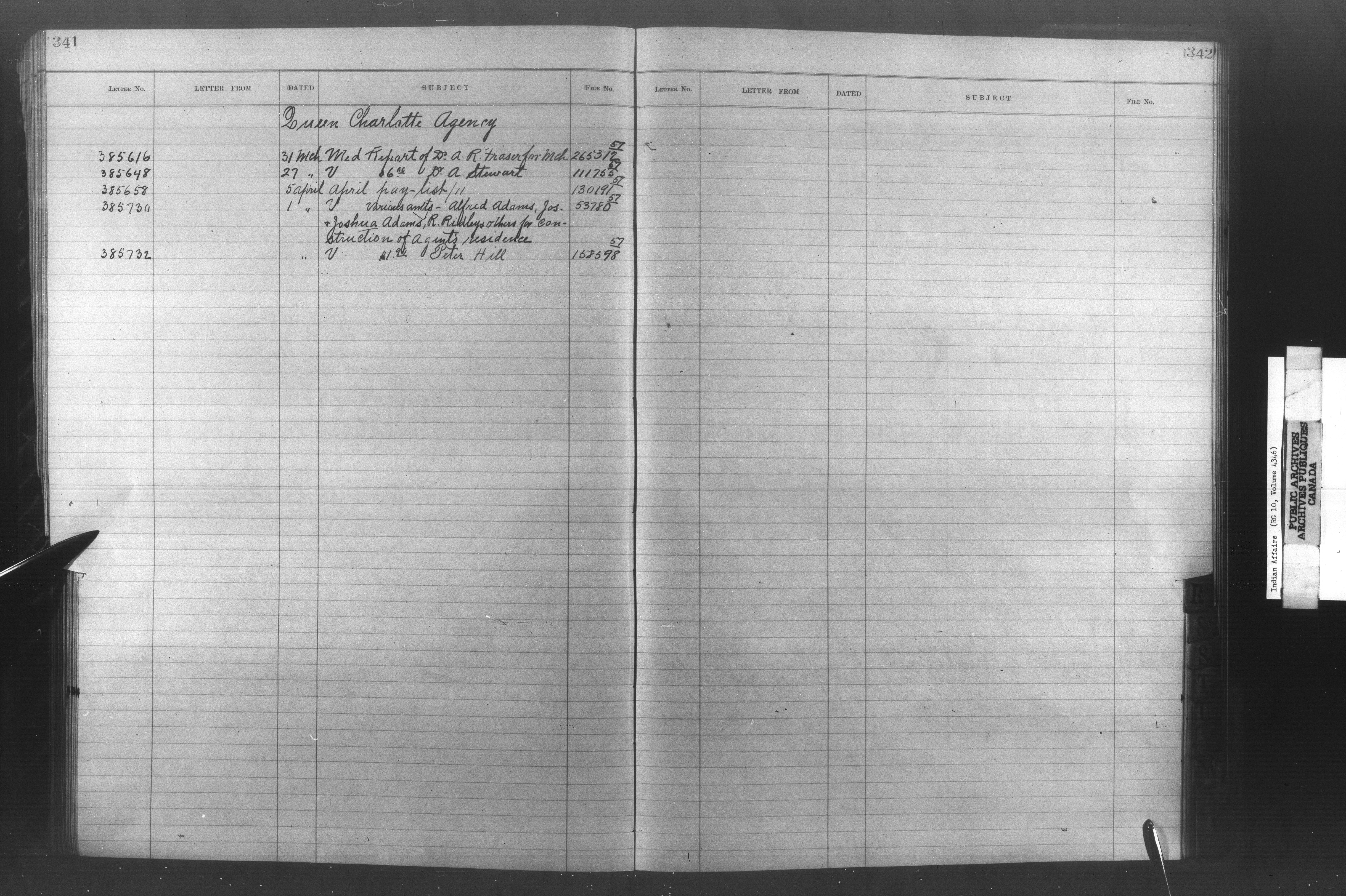 Department of Indian Affairs, Headquarters central registry system :registers, indices and indexed registers : C-10512