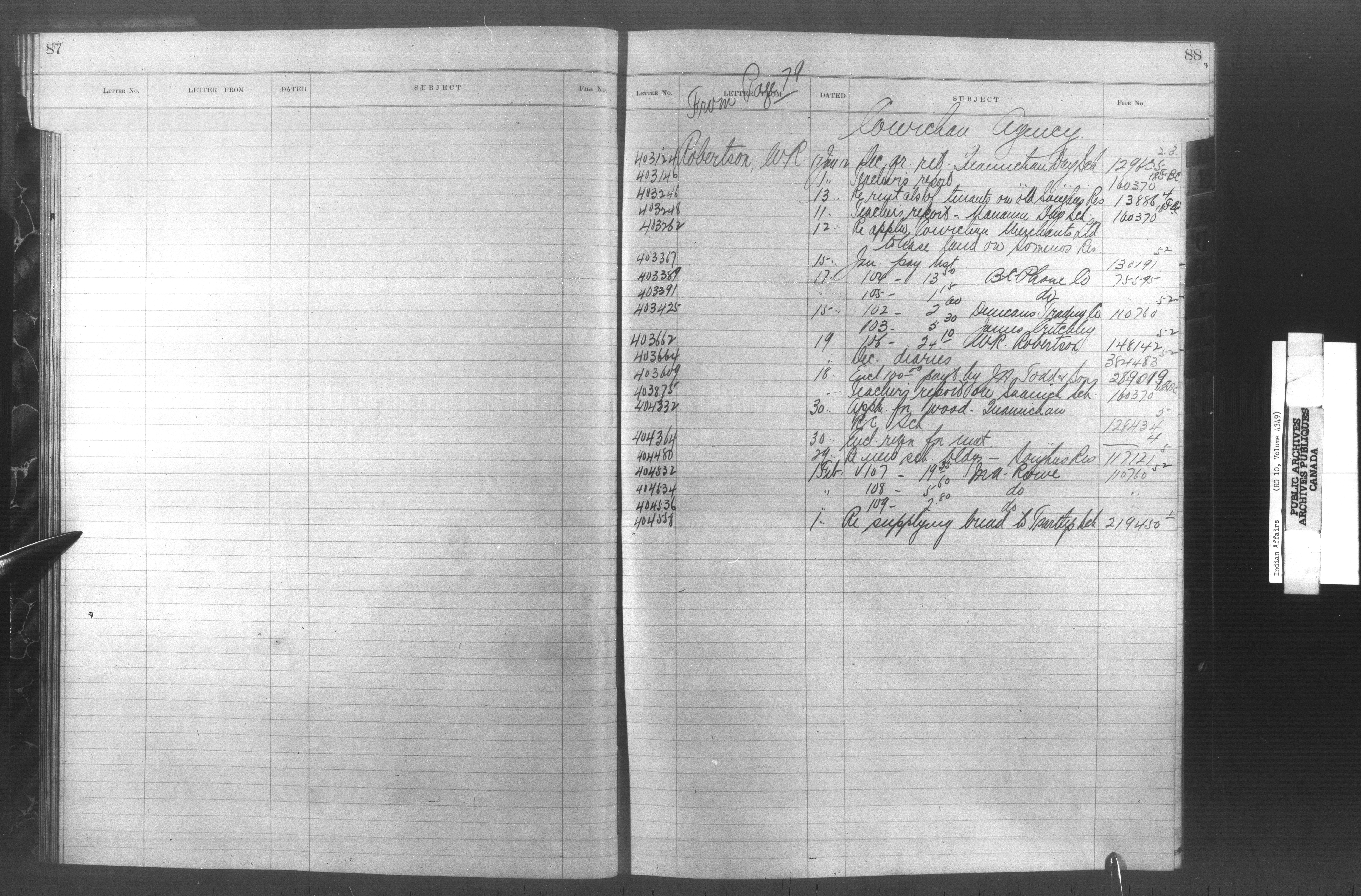 Department of Indian Affairs, Headquarters central registry system :registers, indices and indexed registers : C-10512