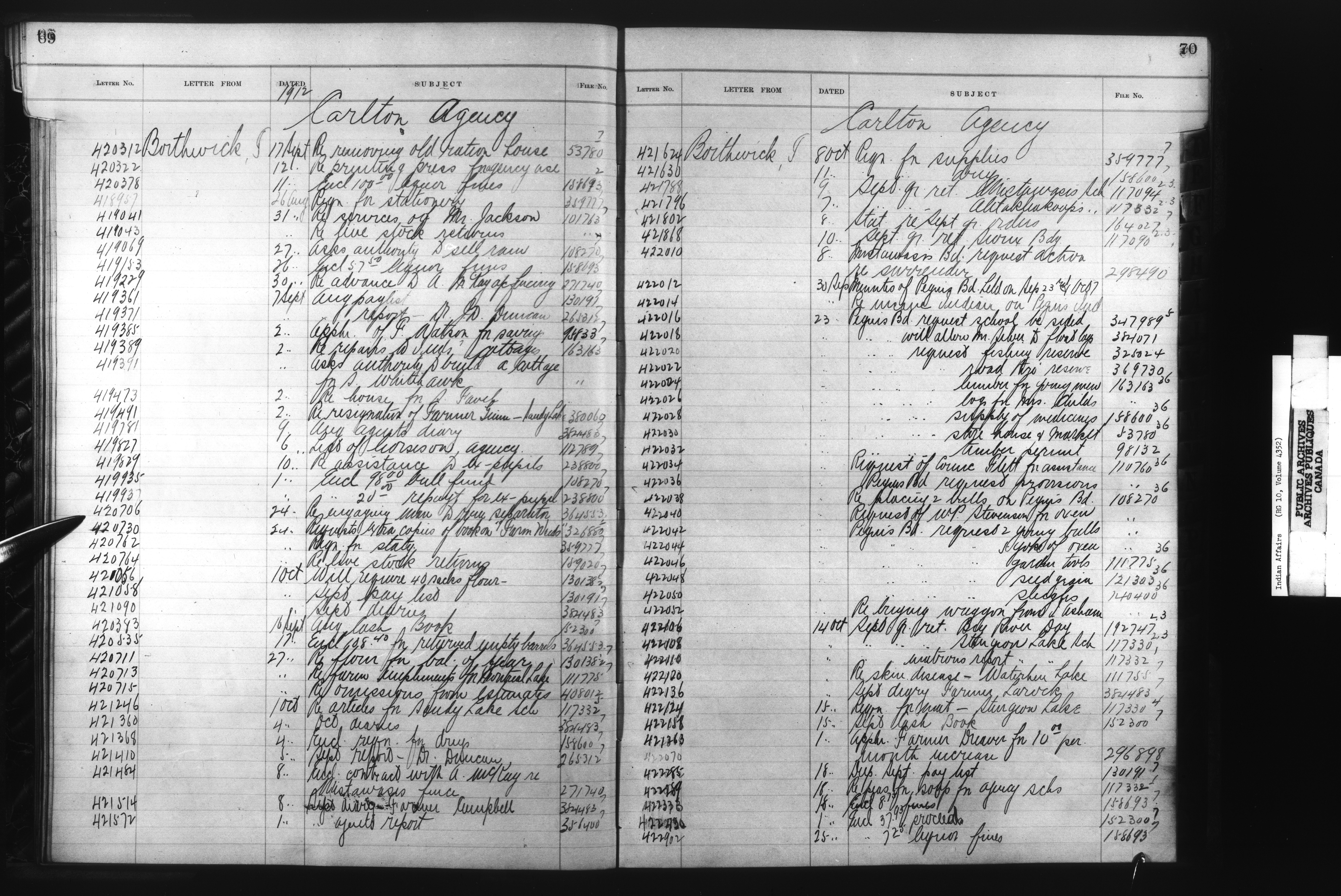 Department of Indian Affairs, Headquarters central registry system :registers, indices and indexed registers : C-10513