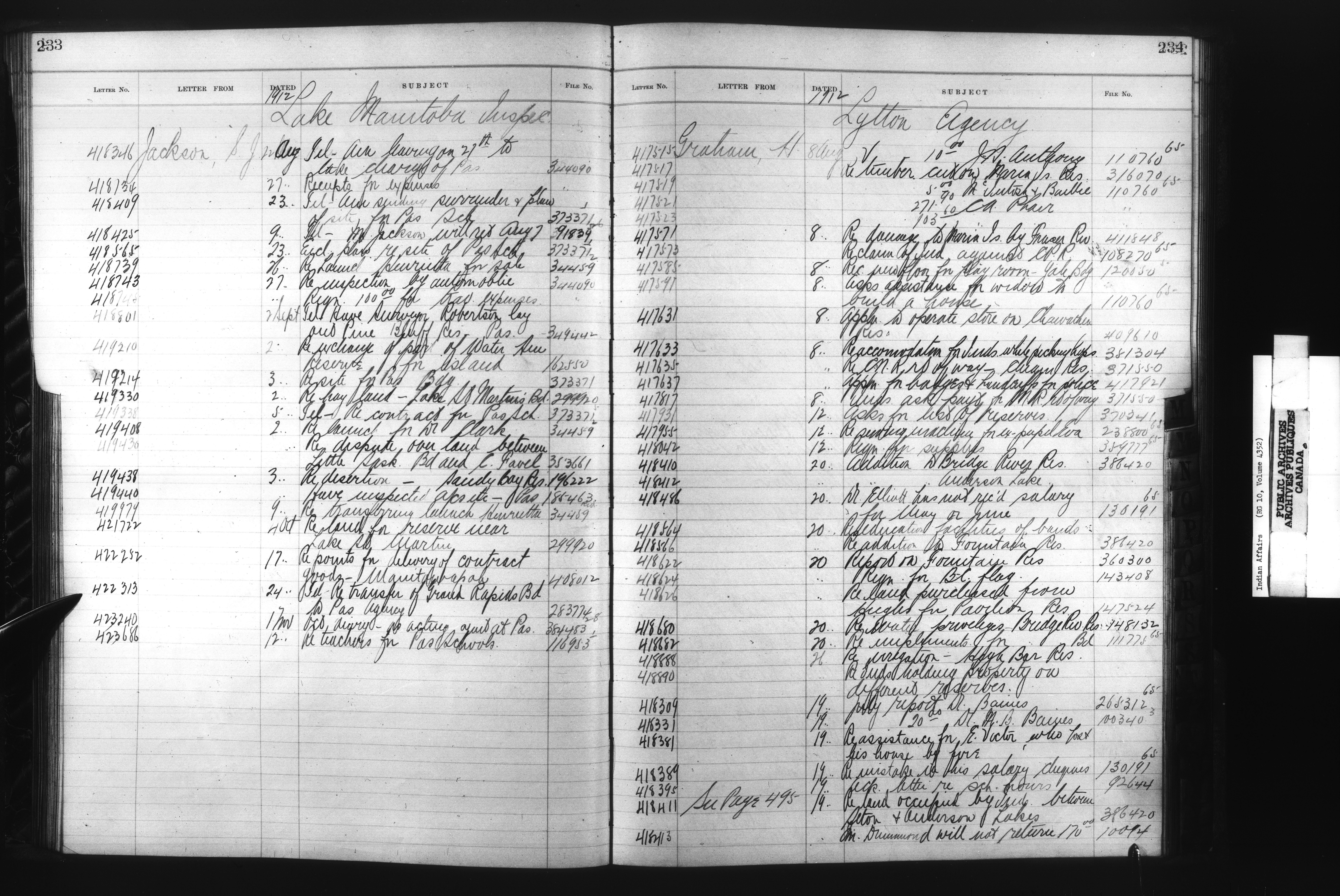 Department of Indian Affairs, Headquarters central registry system :registers, indices and indexed registers : C-10513