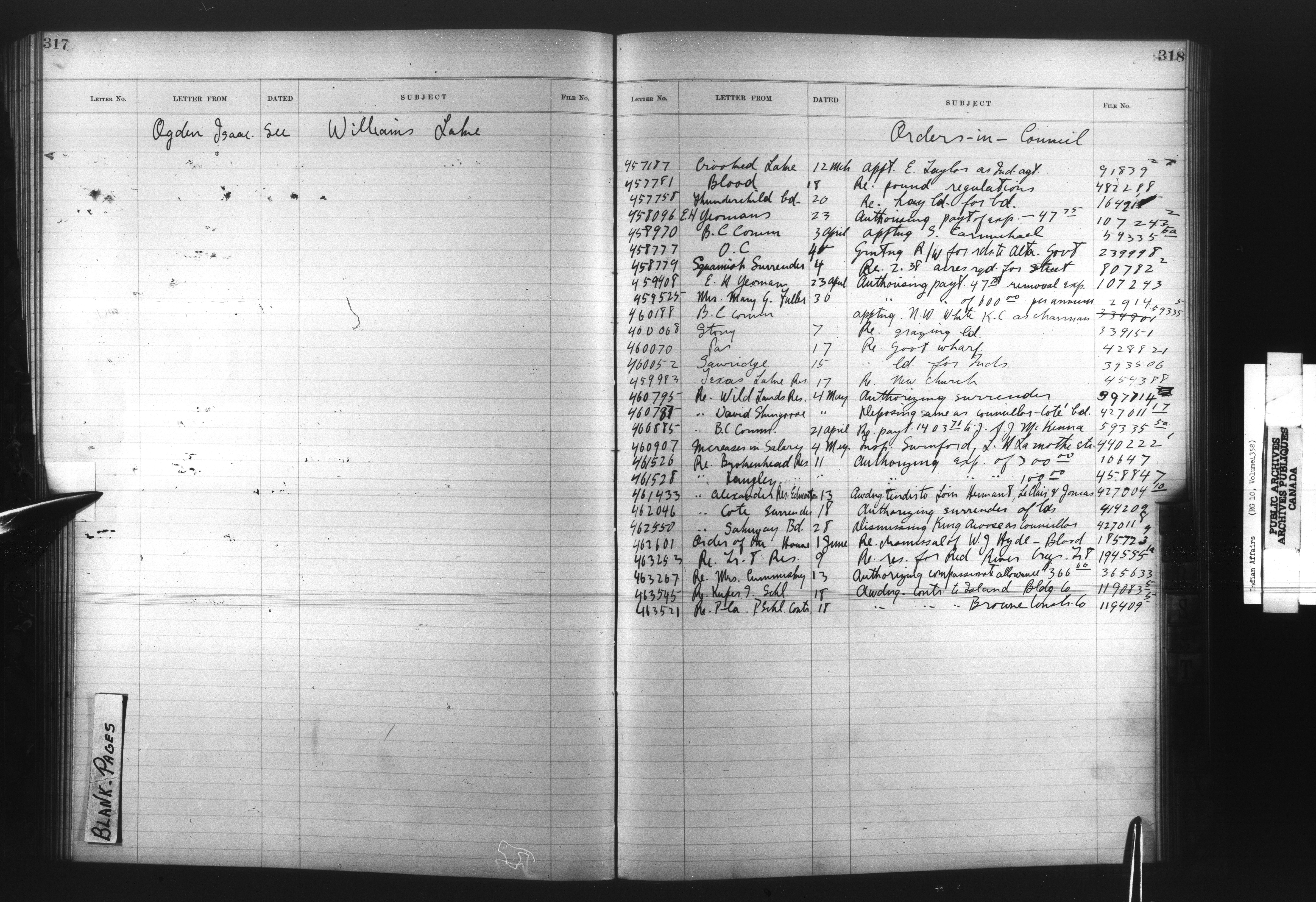 Department of Indian Affairs : Registers, indices and indexed registers to the Black Series - 10515