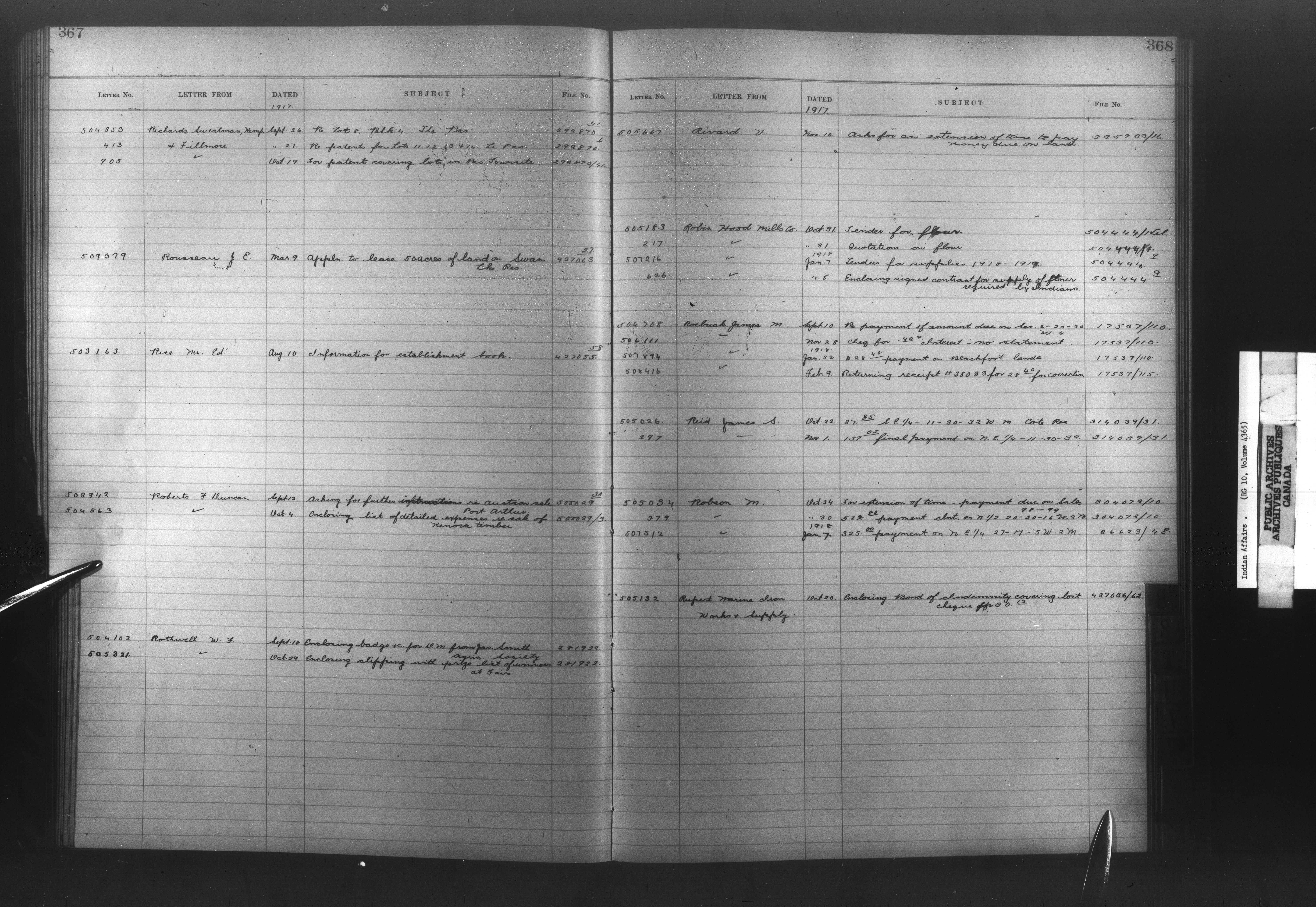 Department of Indian Affairs, Headquarters central registry system :registers, indices and indexed registers : C-10518