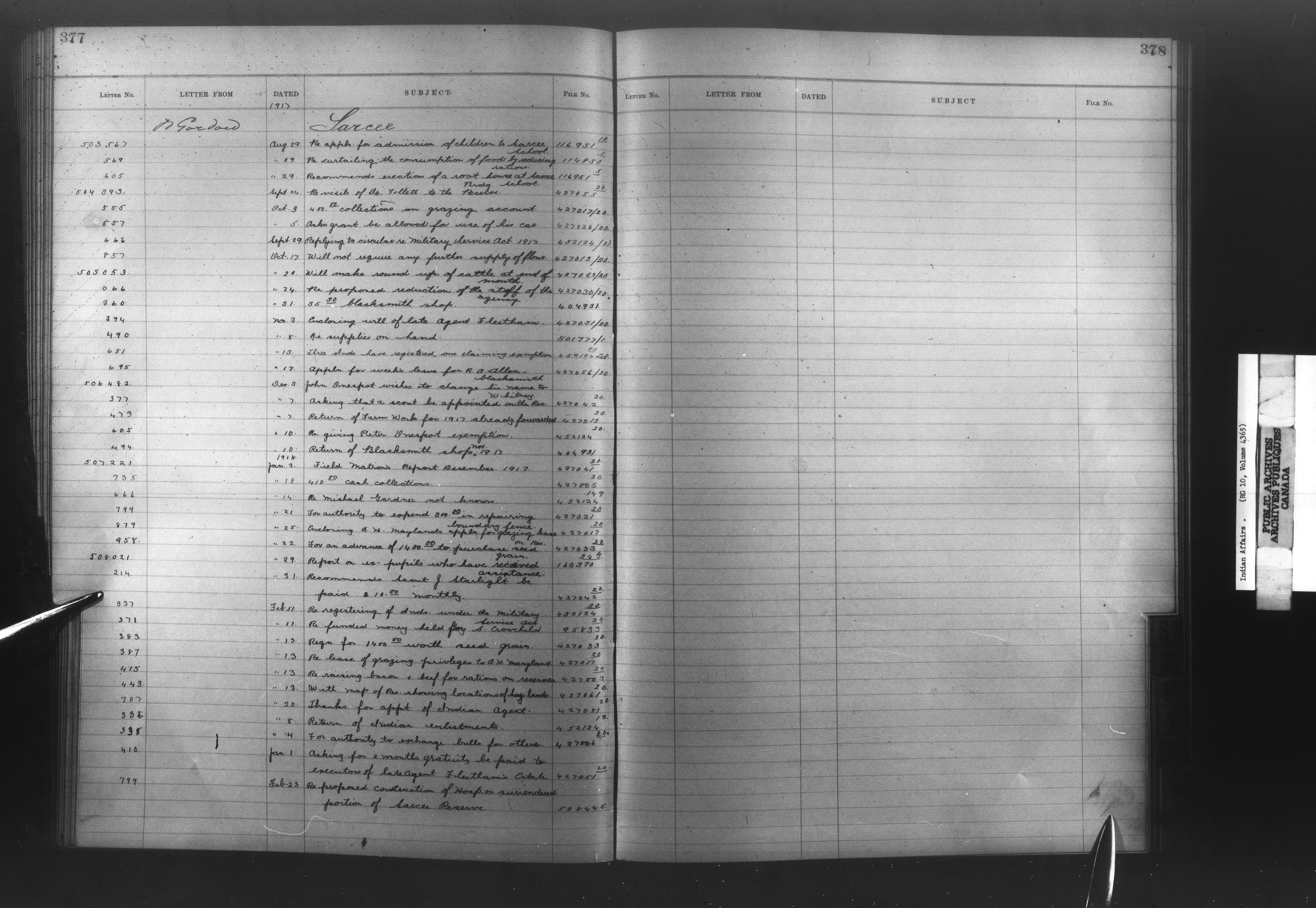 Department of Indian Affairs : Registers, indices and indexed registers to the Black Series - 10518