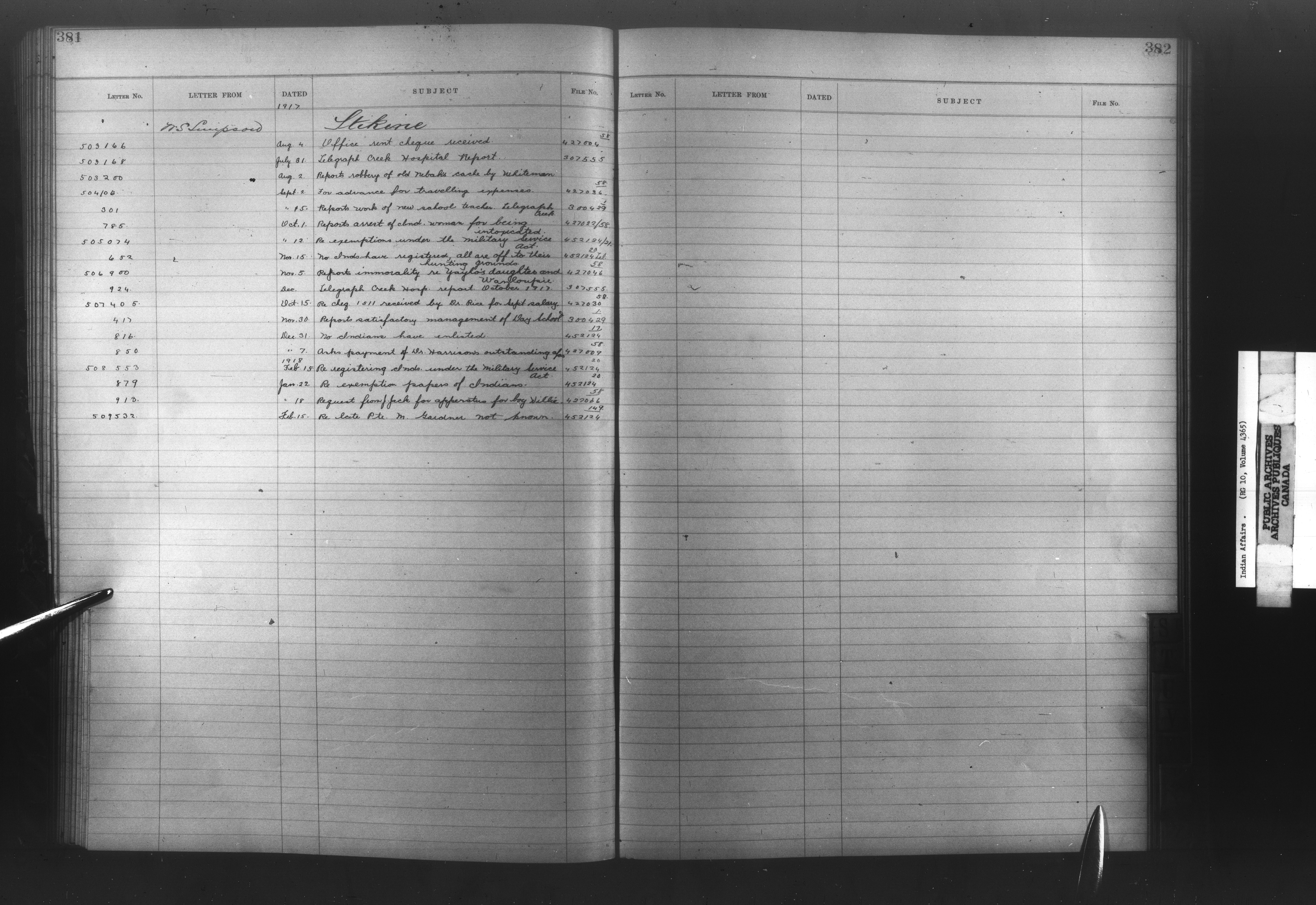 Department of Indian Affairs, Headquarters central registry system :registers, indices and indexed registers : C-10518