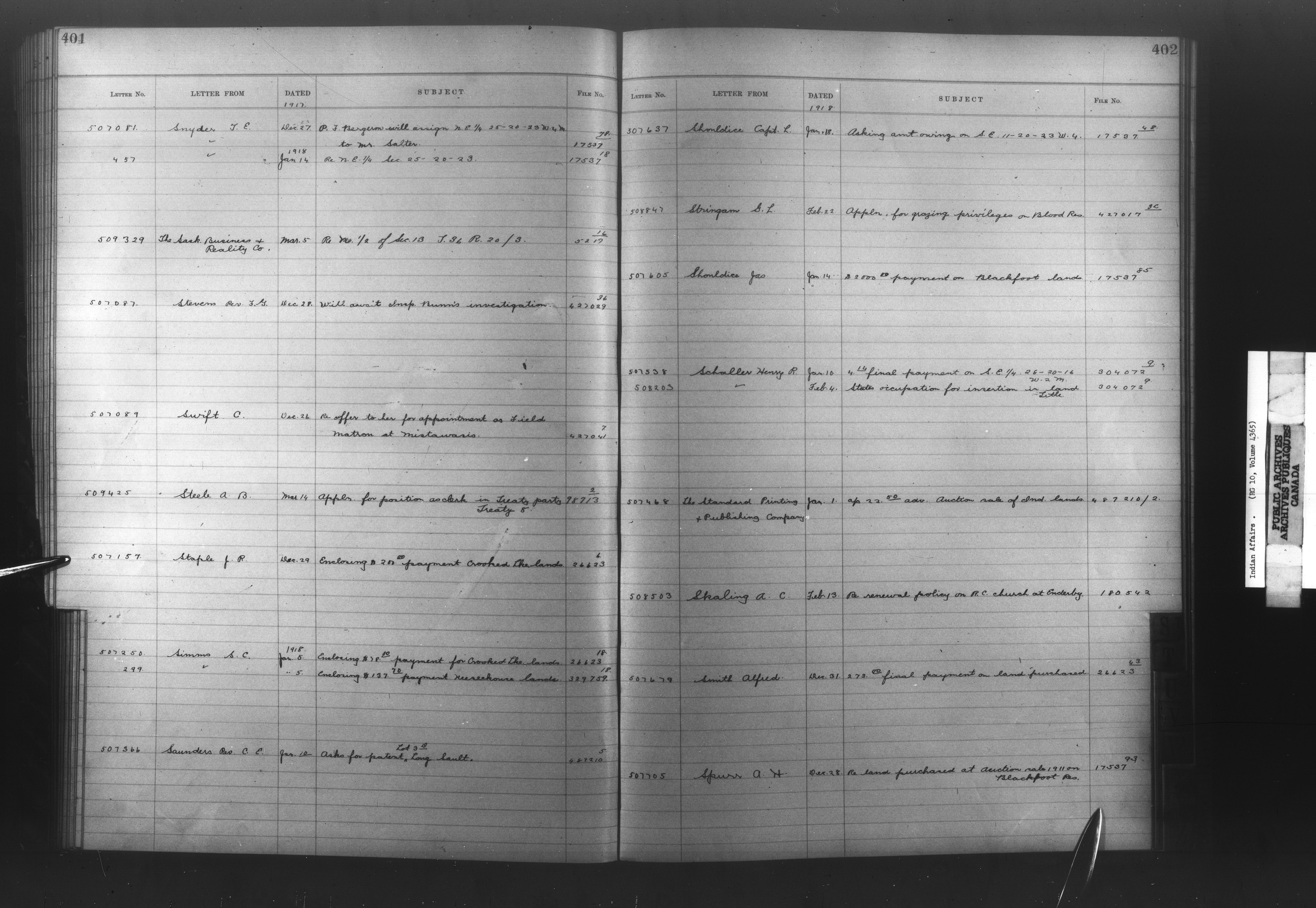 Department of Indian Affairs : Registers, indices and indexed registers to the Black Series - 10518
